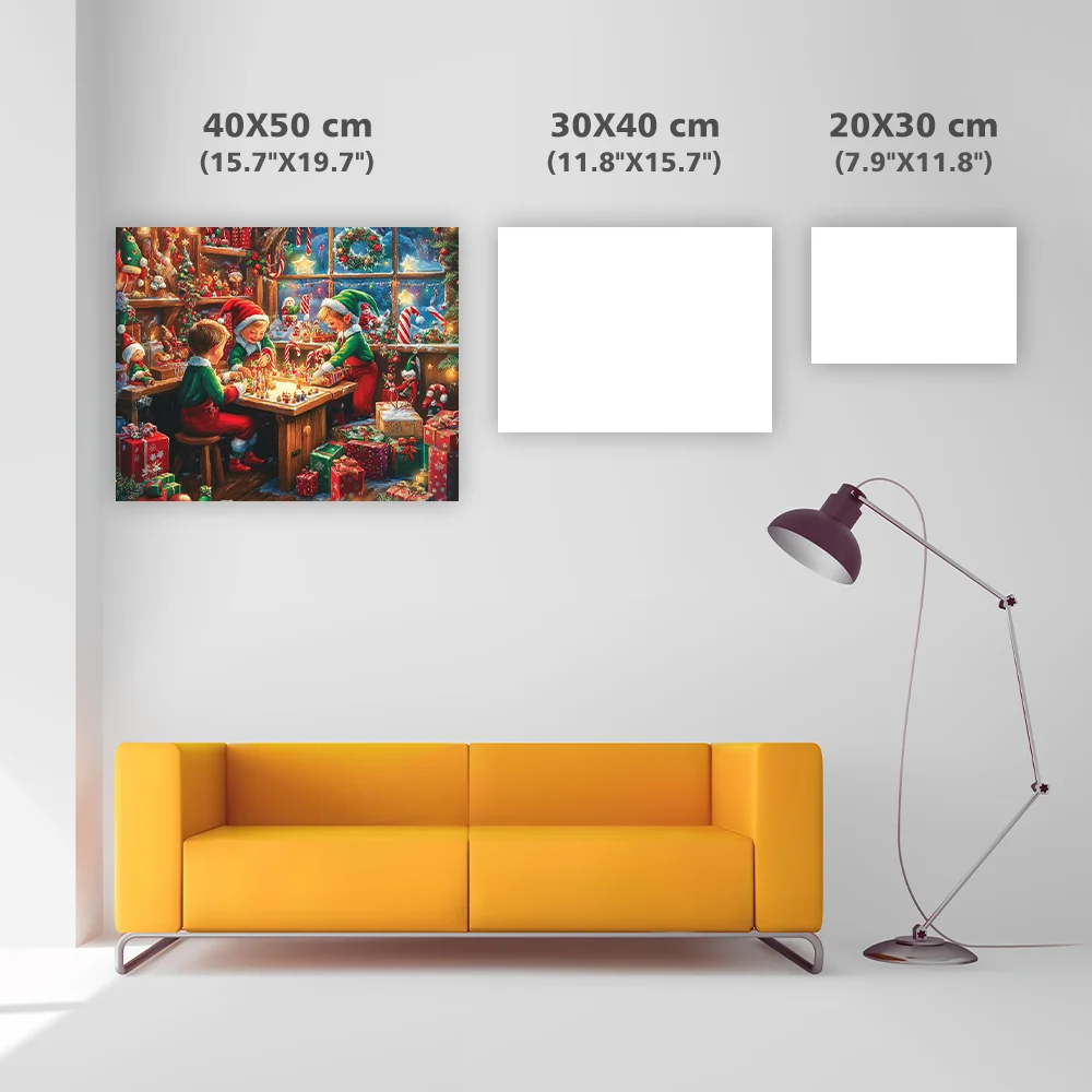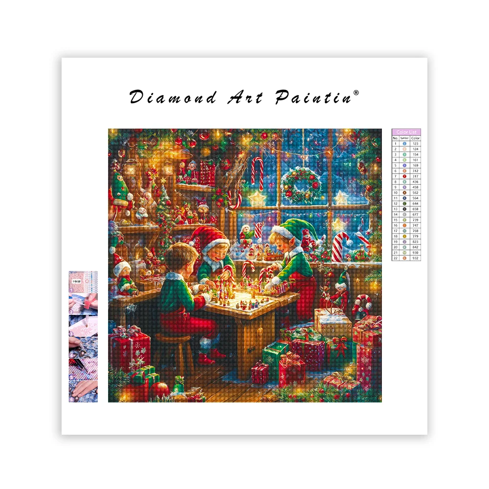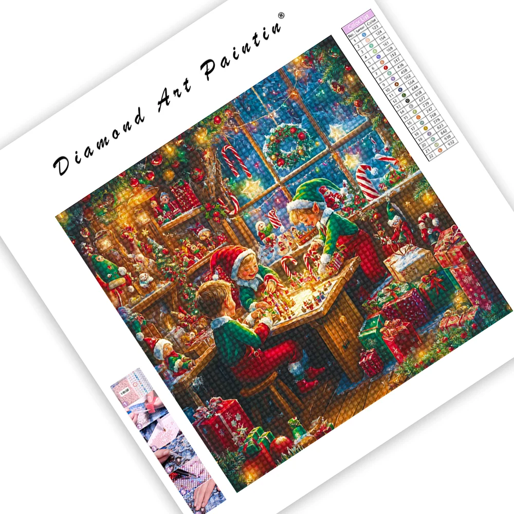 Christmas Elves Working - Diamond Painting