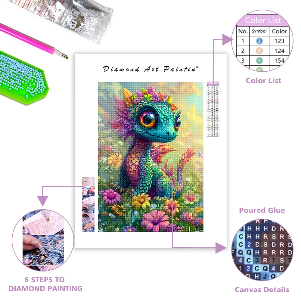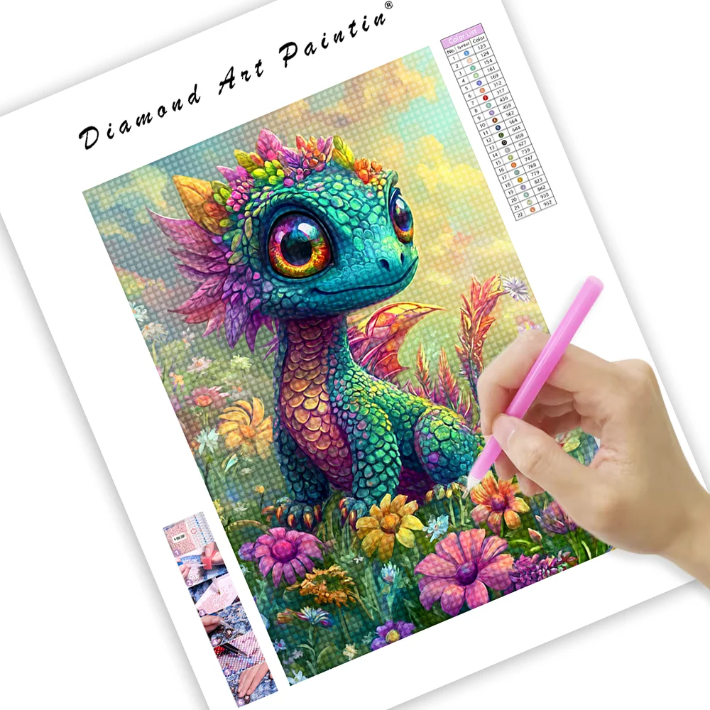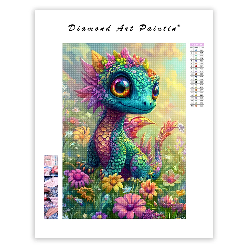 Enchanting Rainbow Dragon in Bloom - Diamond Painting