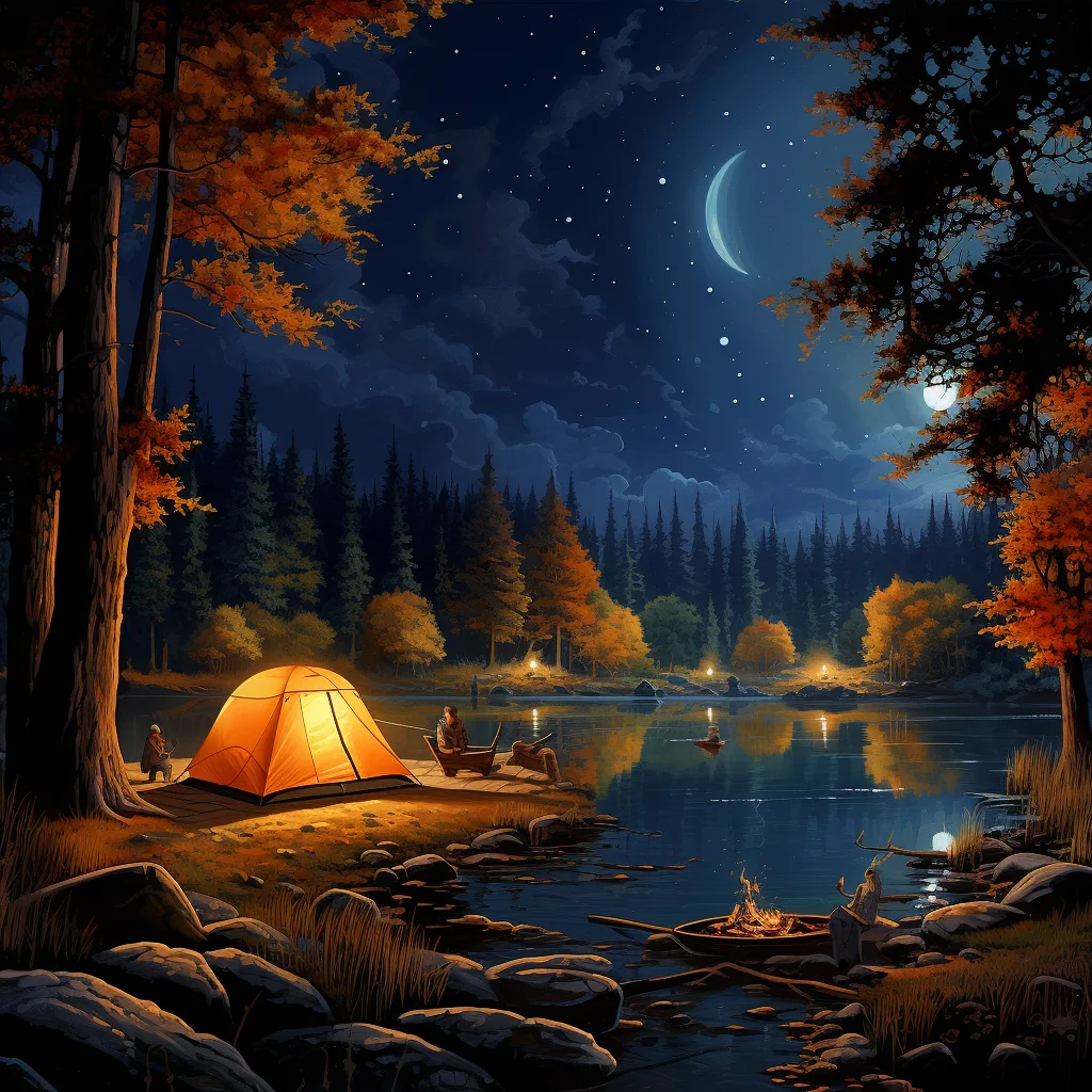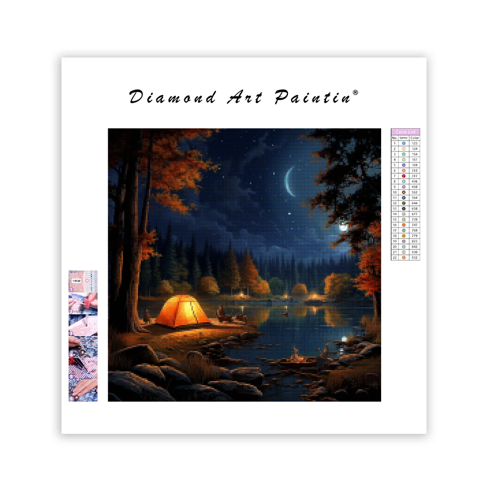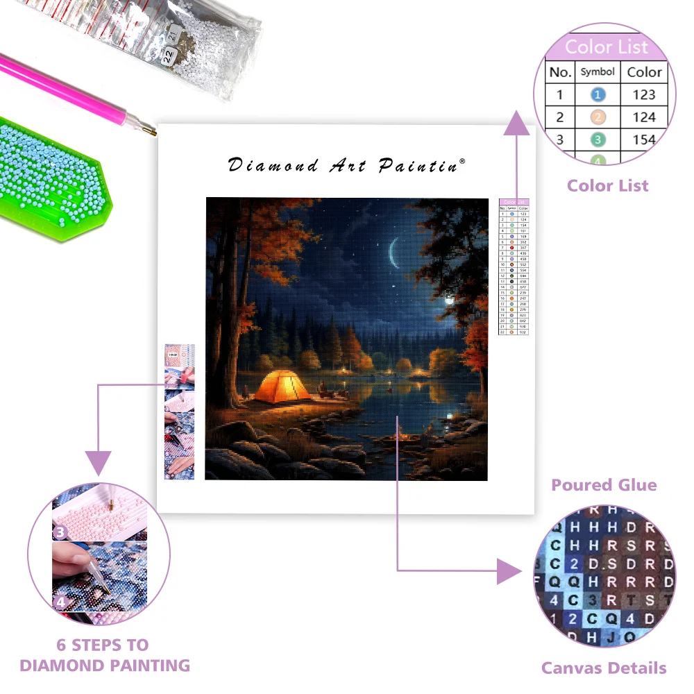 Nighttime Camping by Lake - Diamond Painting