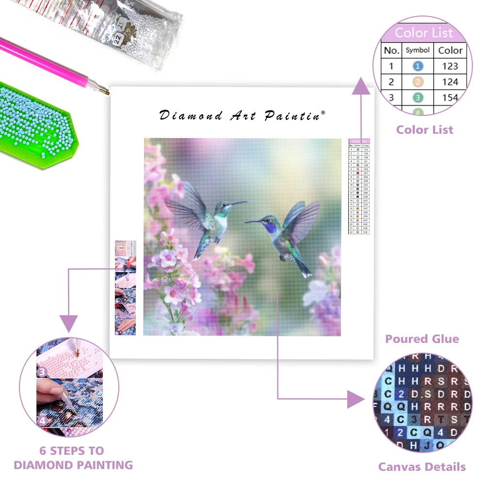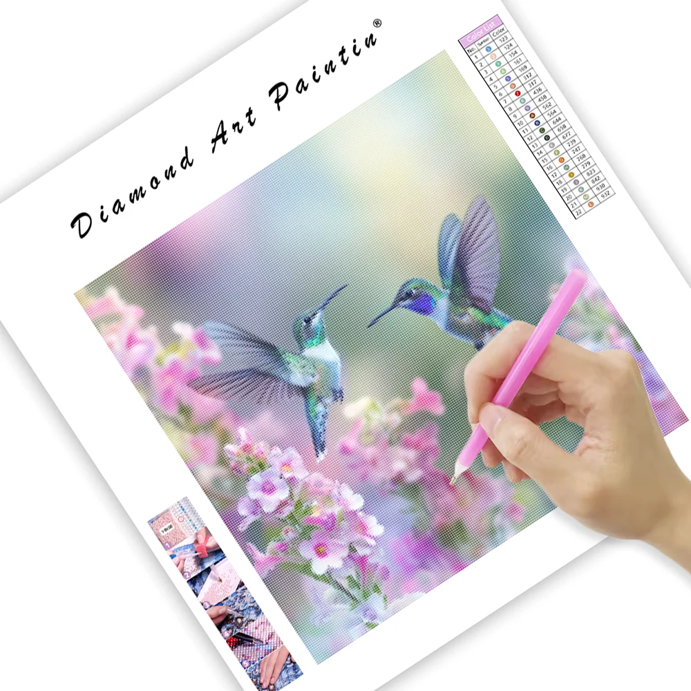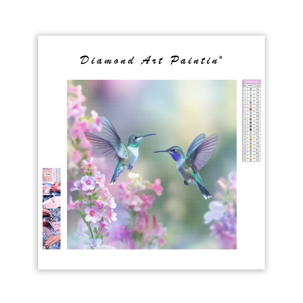 Flying Hummingbirds with Blossoms - Diamond Painting