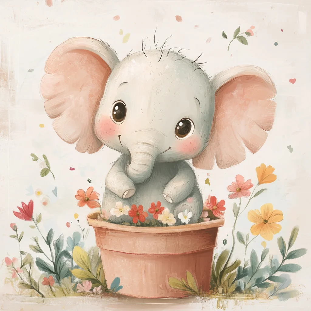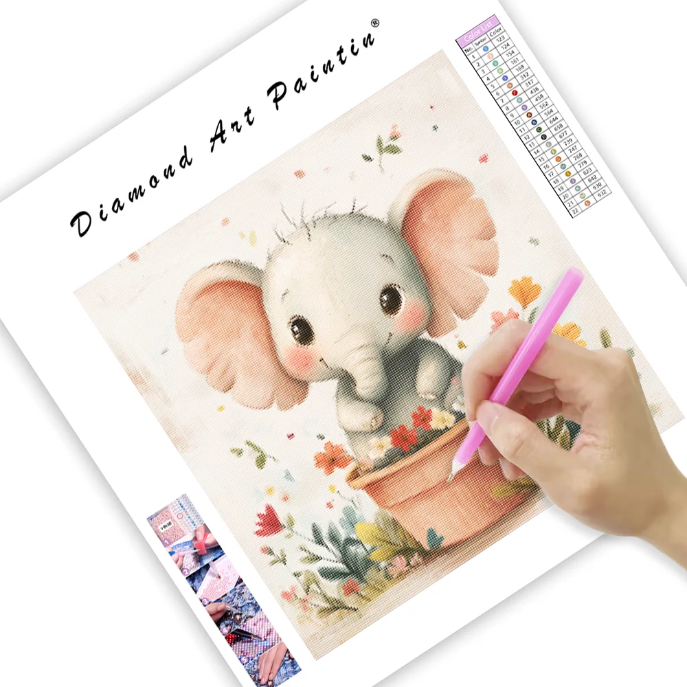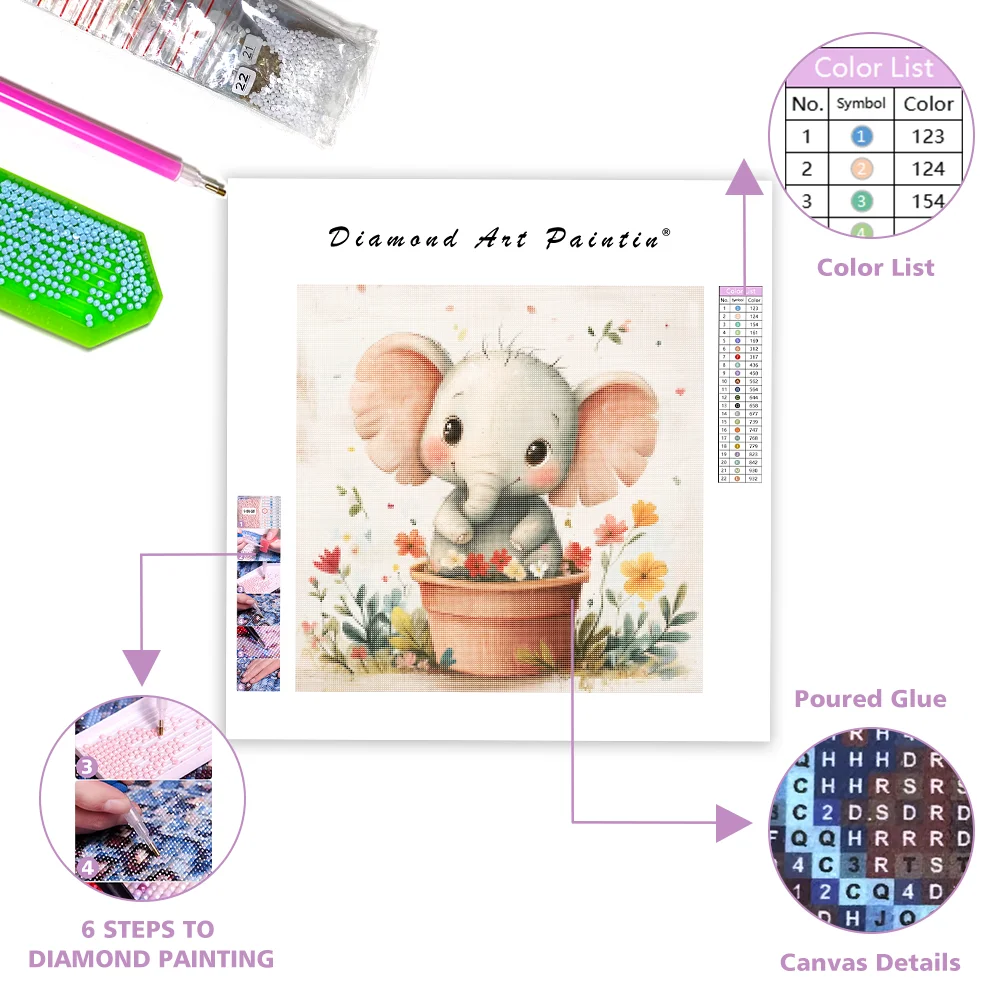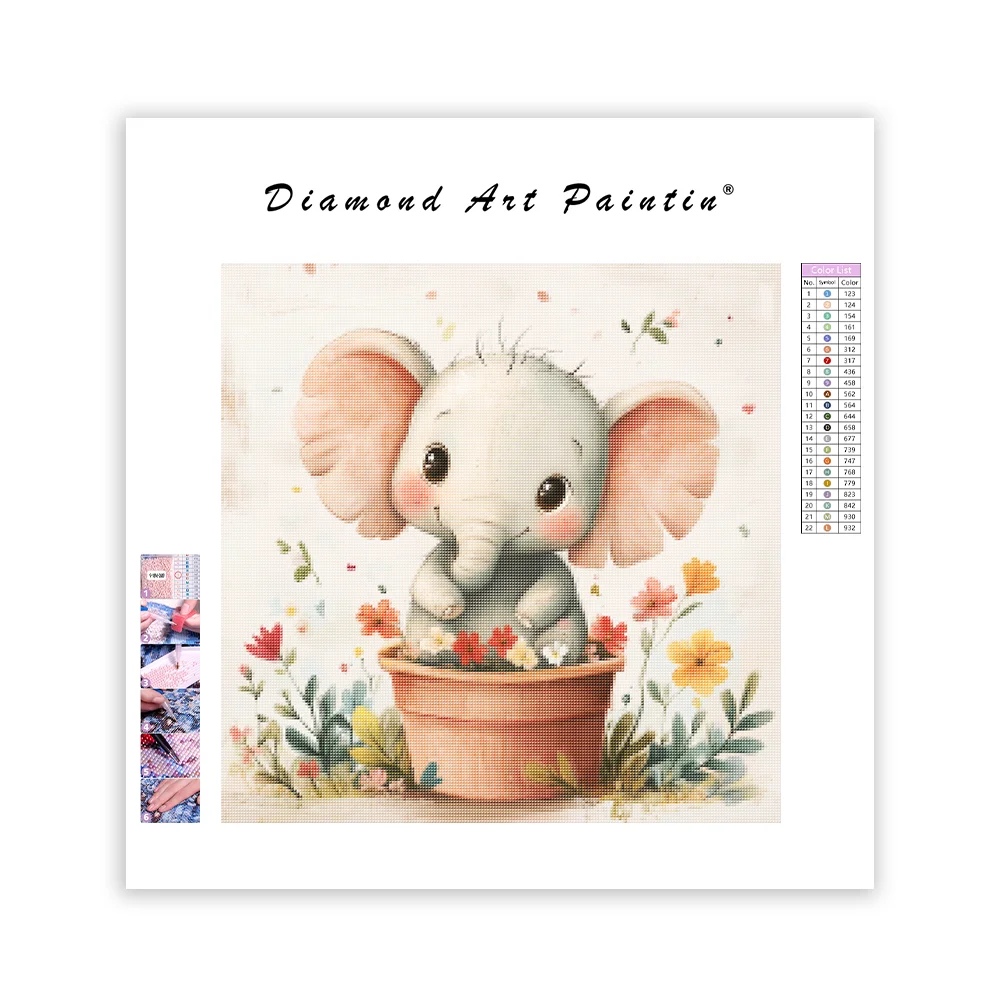Happy Elephant in a Flower Pot - Diamond Painting