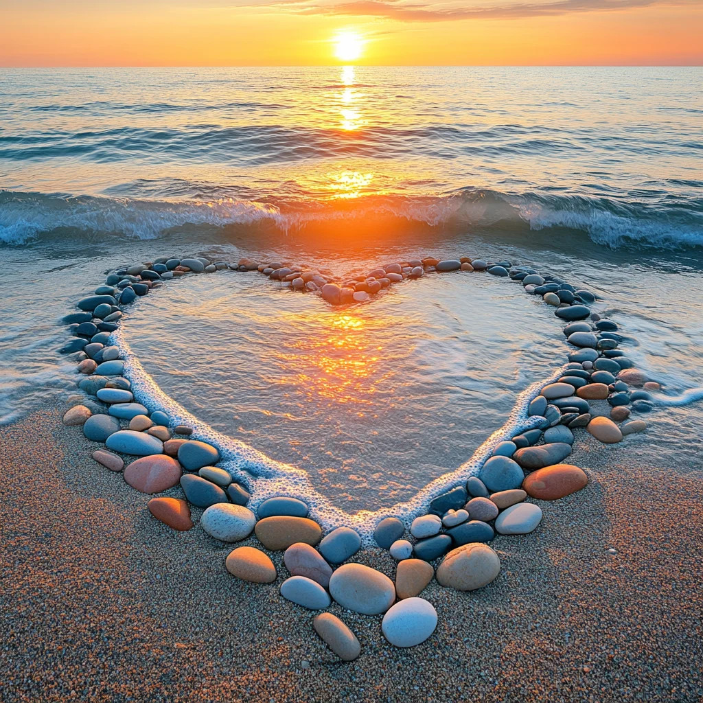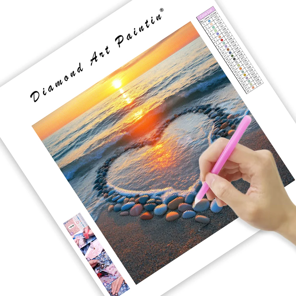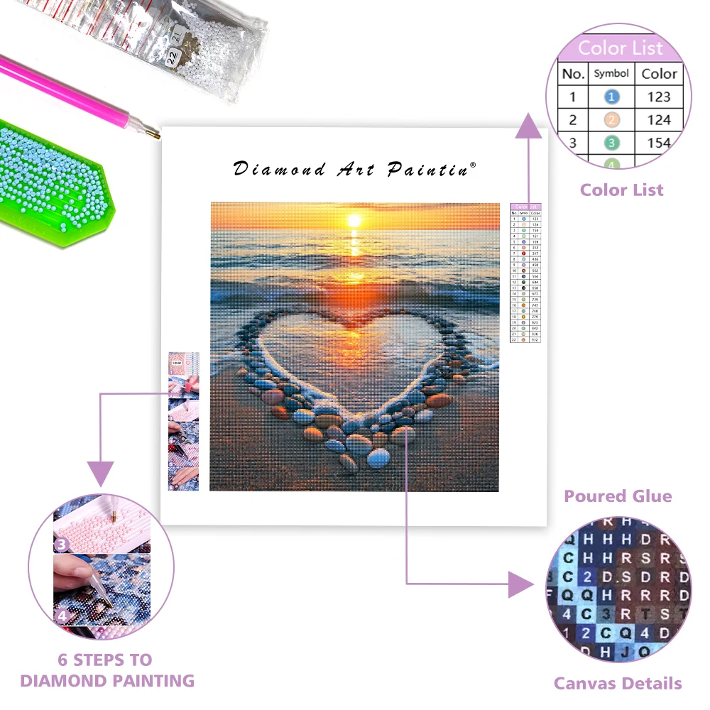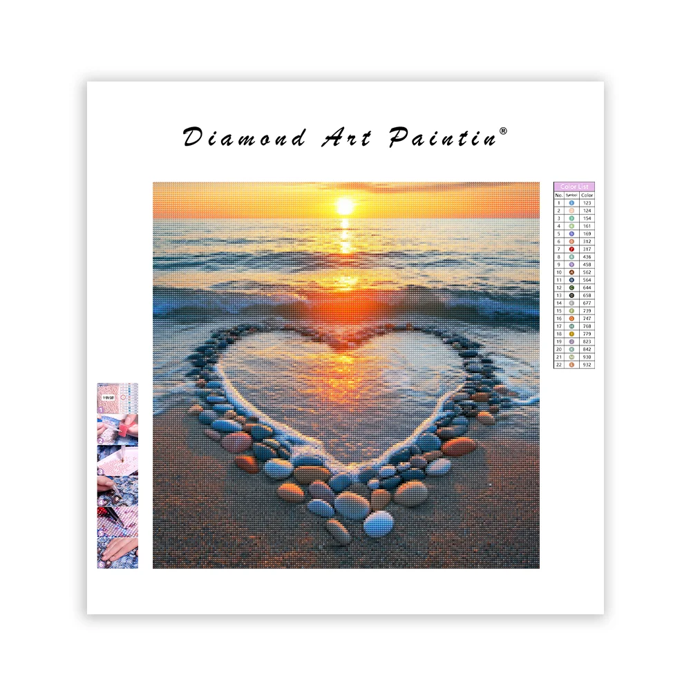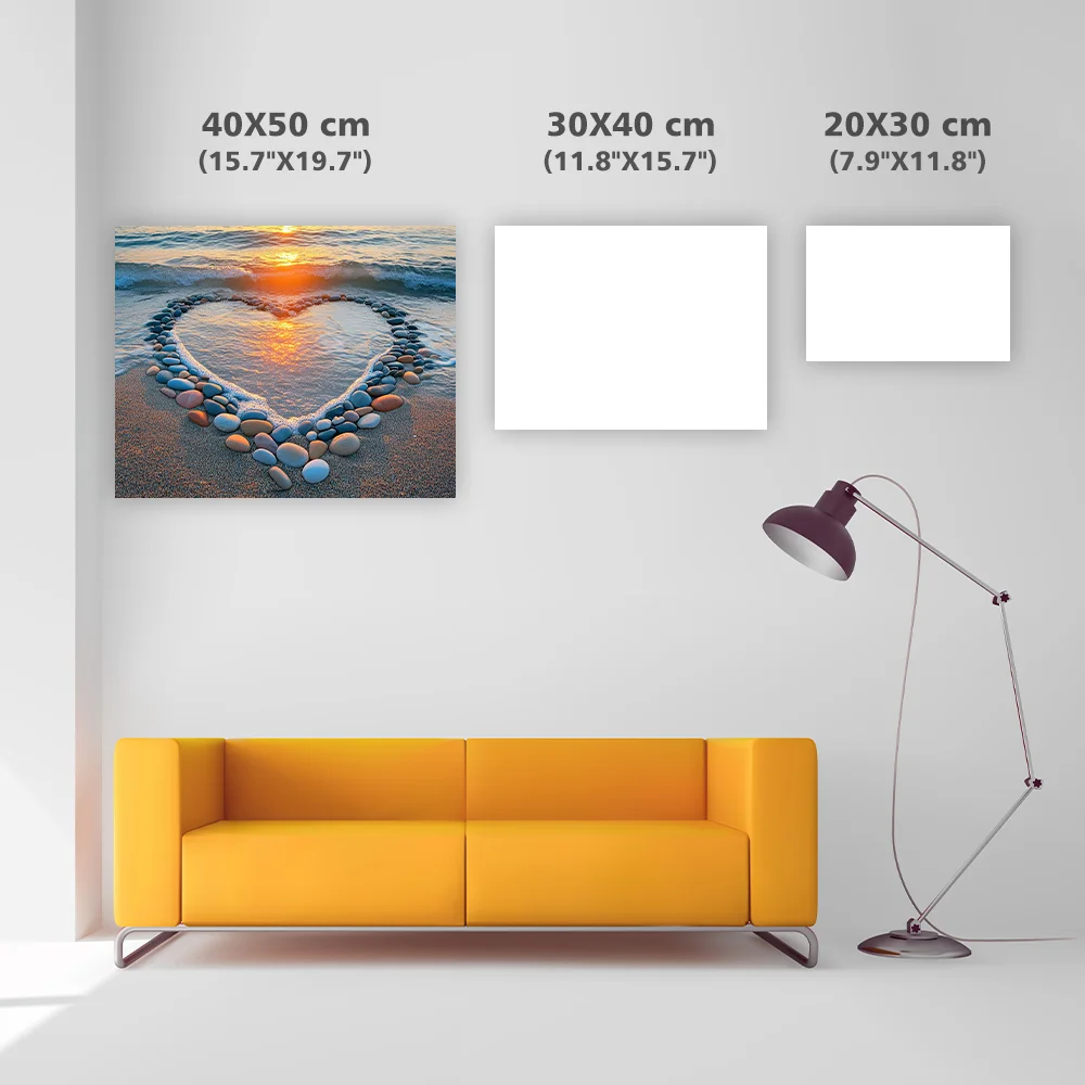 Heart-Shaped Beach Sunset - Diamond Painting