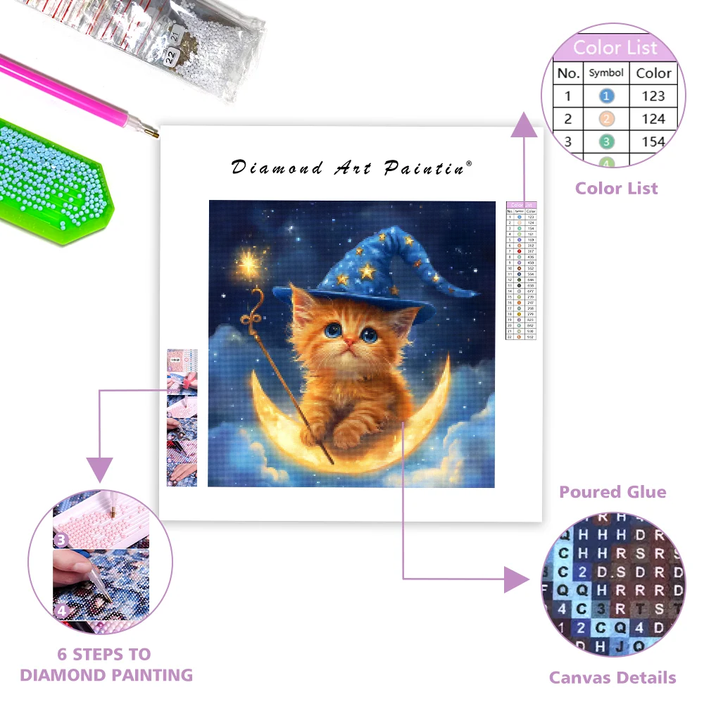 Magical Kitten on Moon - Diamond Painting
