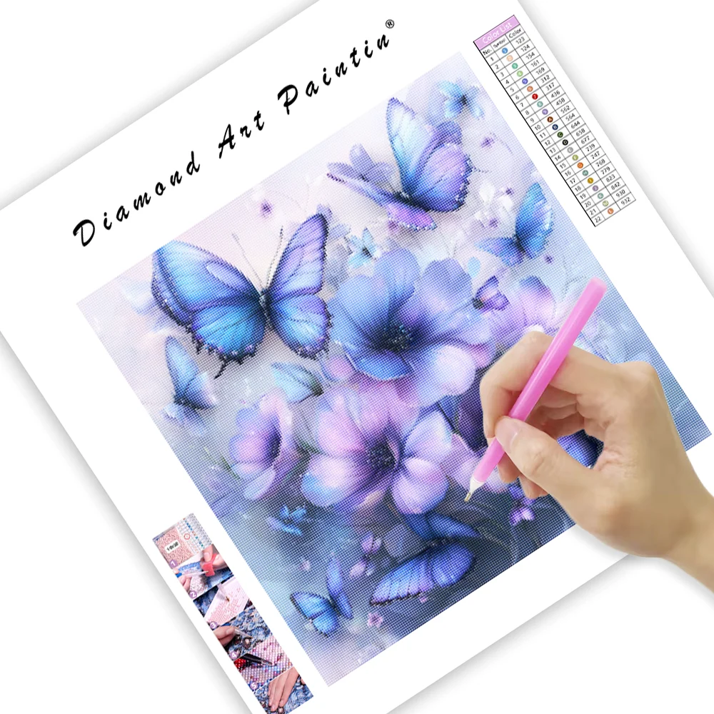 Purple Flowers and Butterflies Garden - Diamond Painting