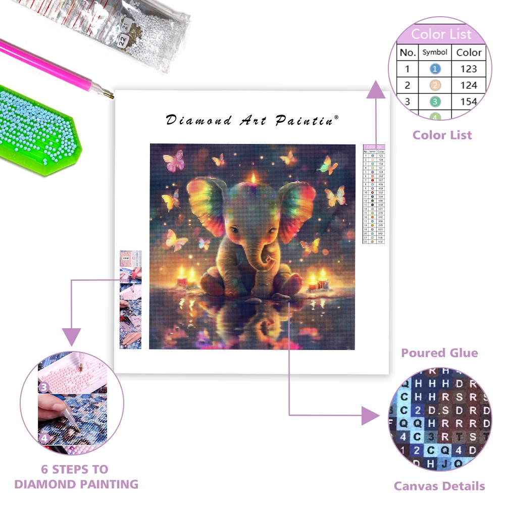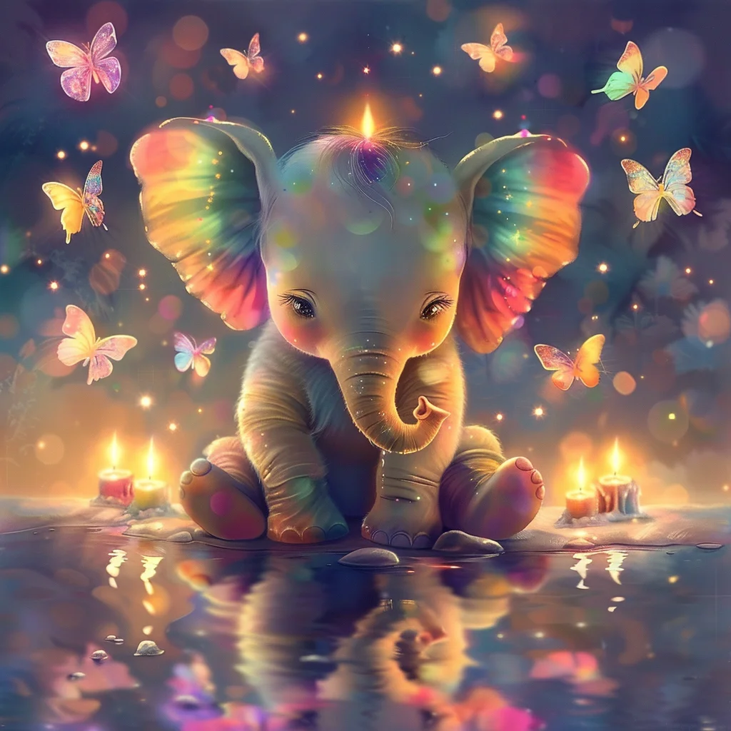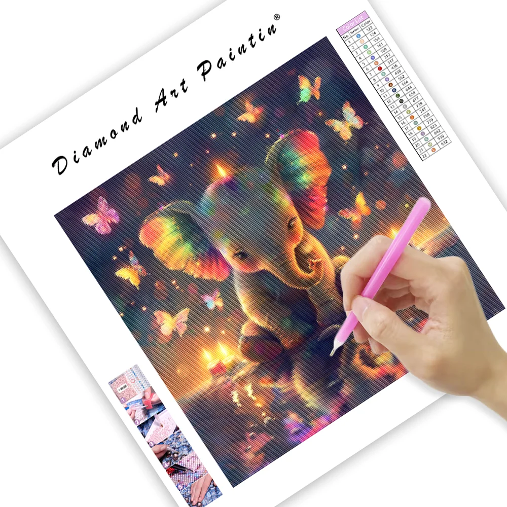 Rainbow Baby Elephant with Butterflies - Diamond Painting