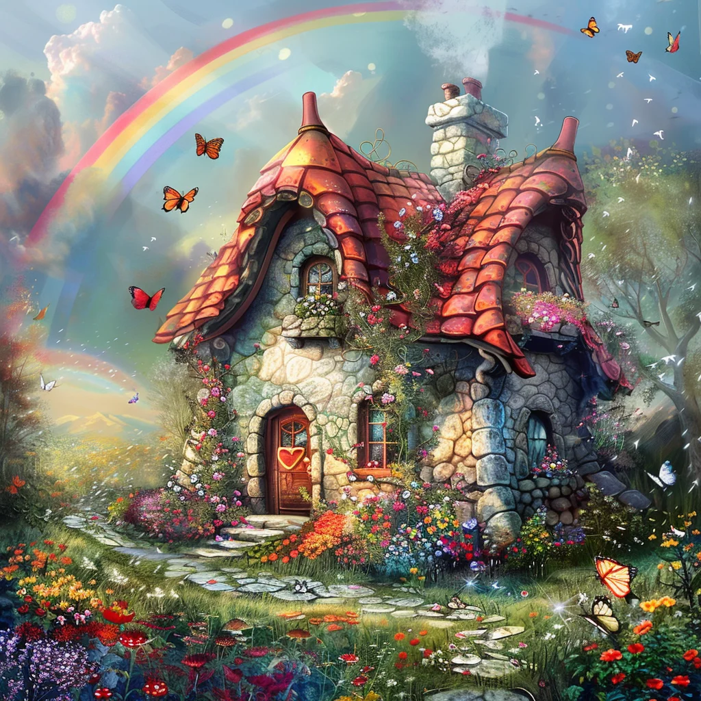 Rainbow Fairy Cottage - Diamond Painting