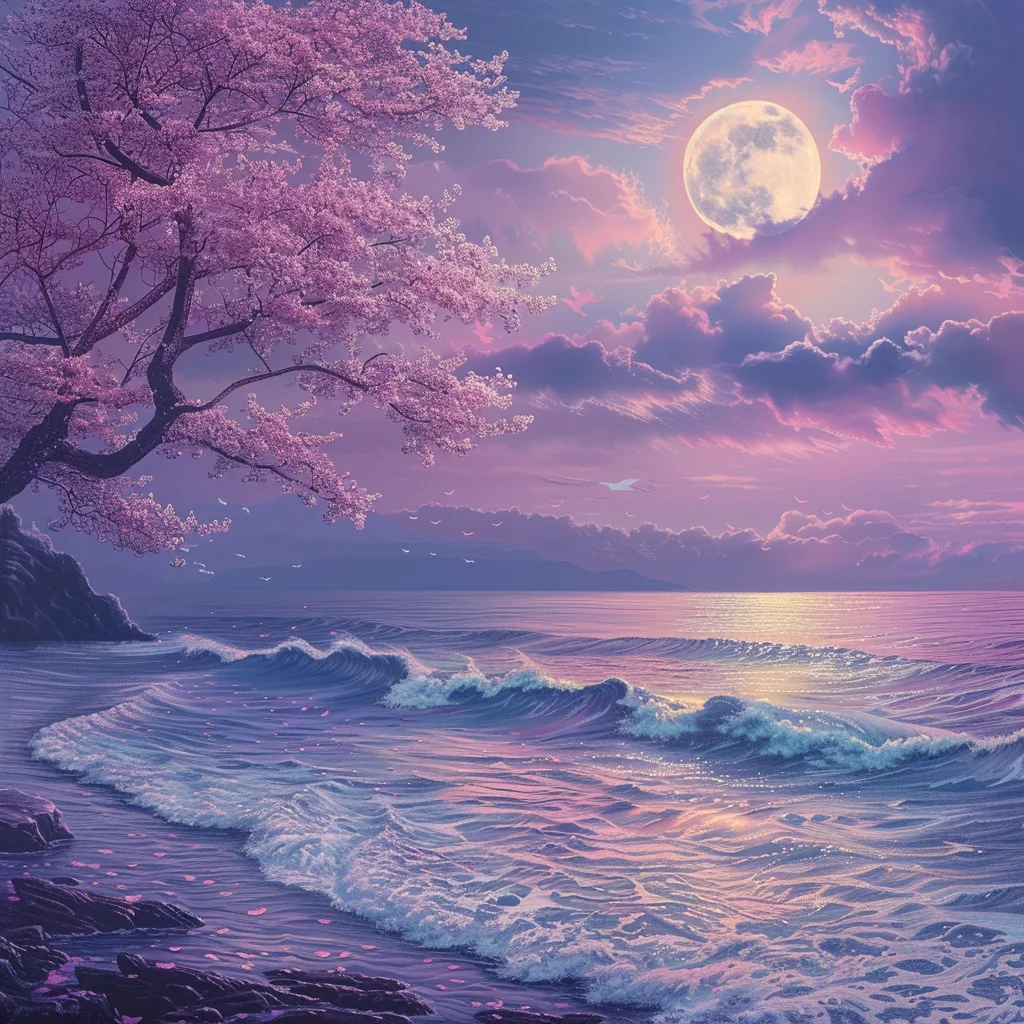 Sakura Moonlight Seaside - Diamond Painting