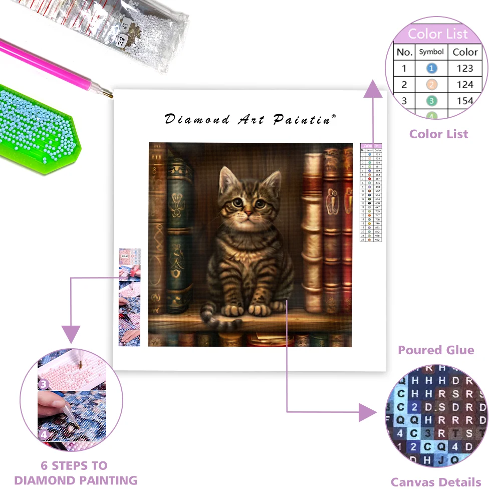 This item: Cute Cat on Bookshelf - Diamond Painting