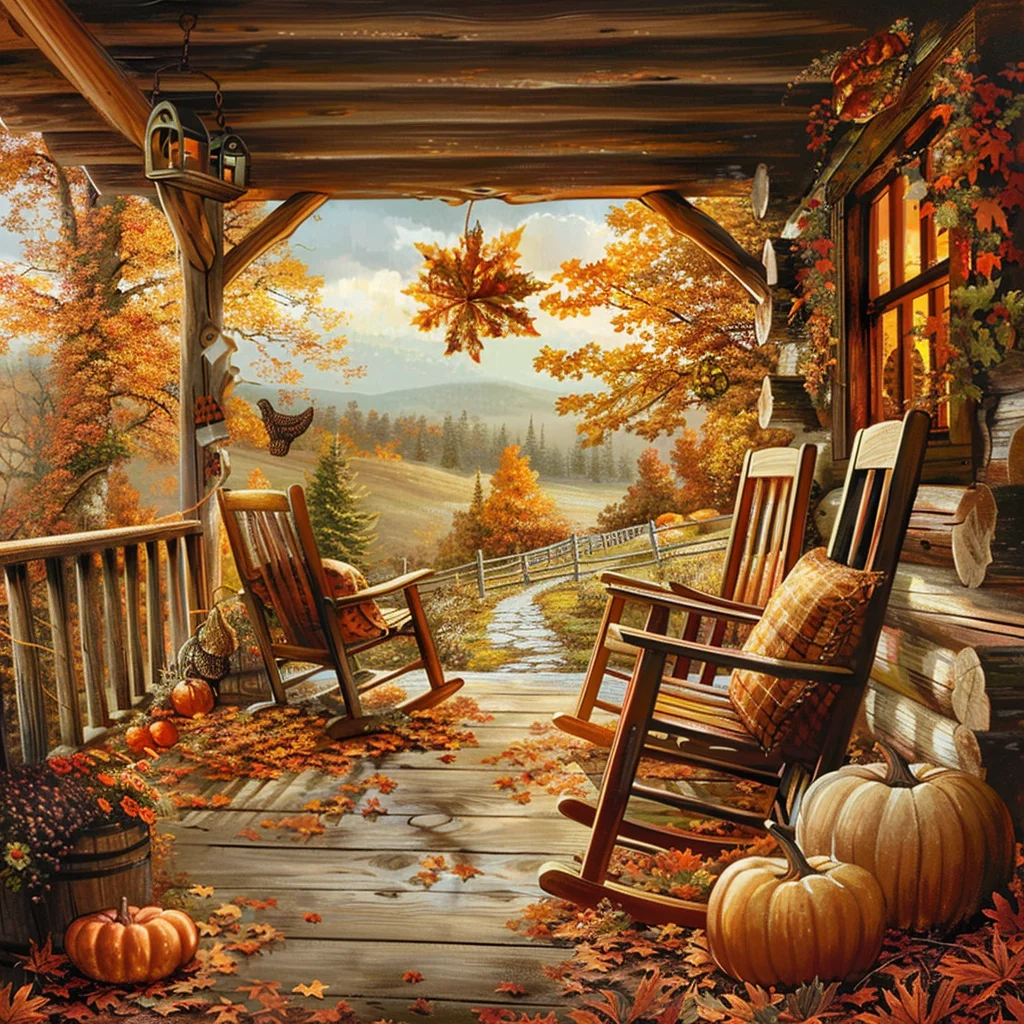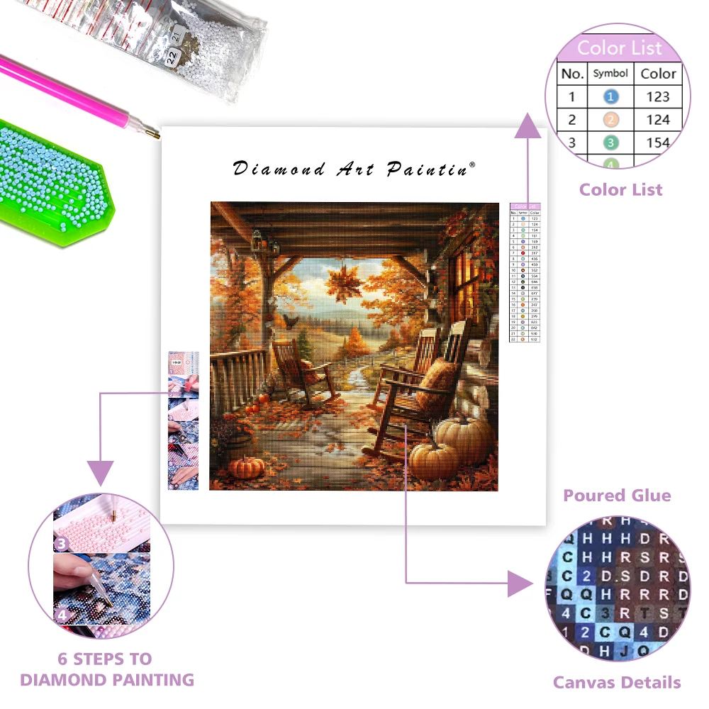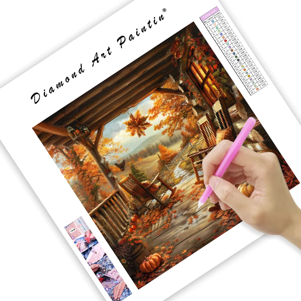 Peaceful Porch in Autumn - Diamond Painting