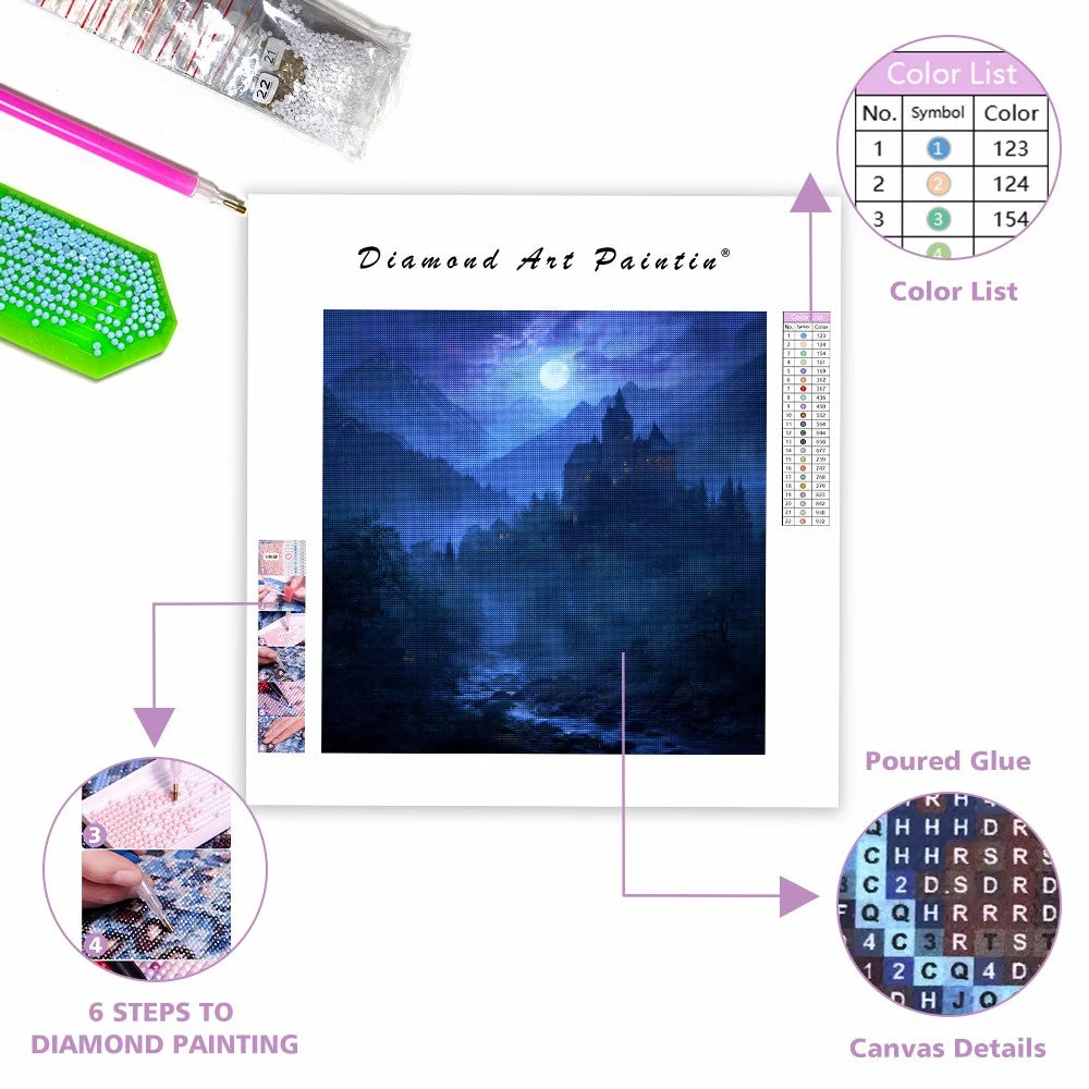 PREMIUM DIAMOND PAINTING KIT: Kit includes everything you need to create your Diamond Painting, including 1x adhesive canvas, 1x set of diamonds, and 1x premium toolkit.
