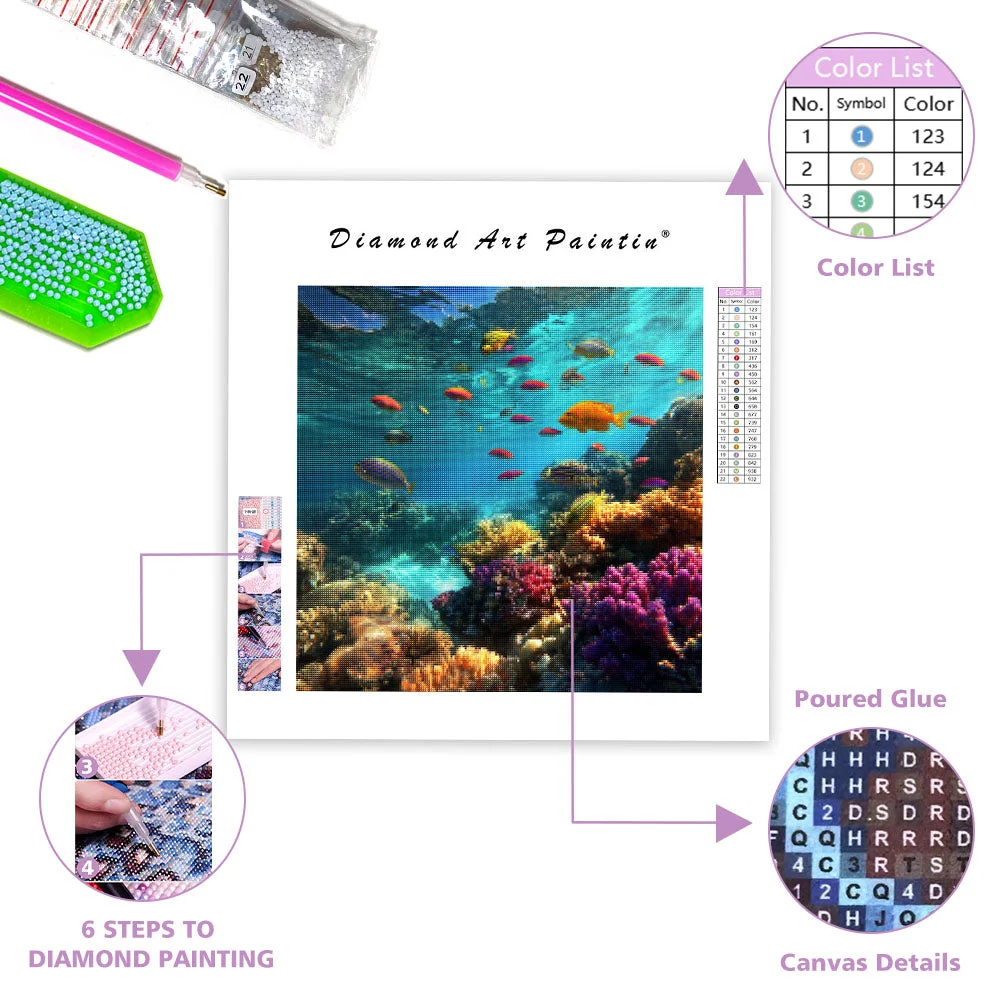 Blue Coral Reef and Tropical Fish - Diamond Painting