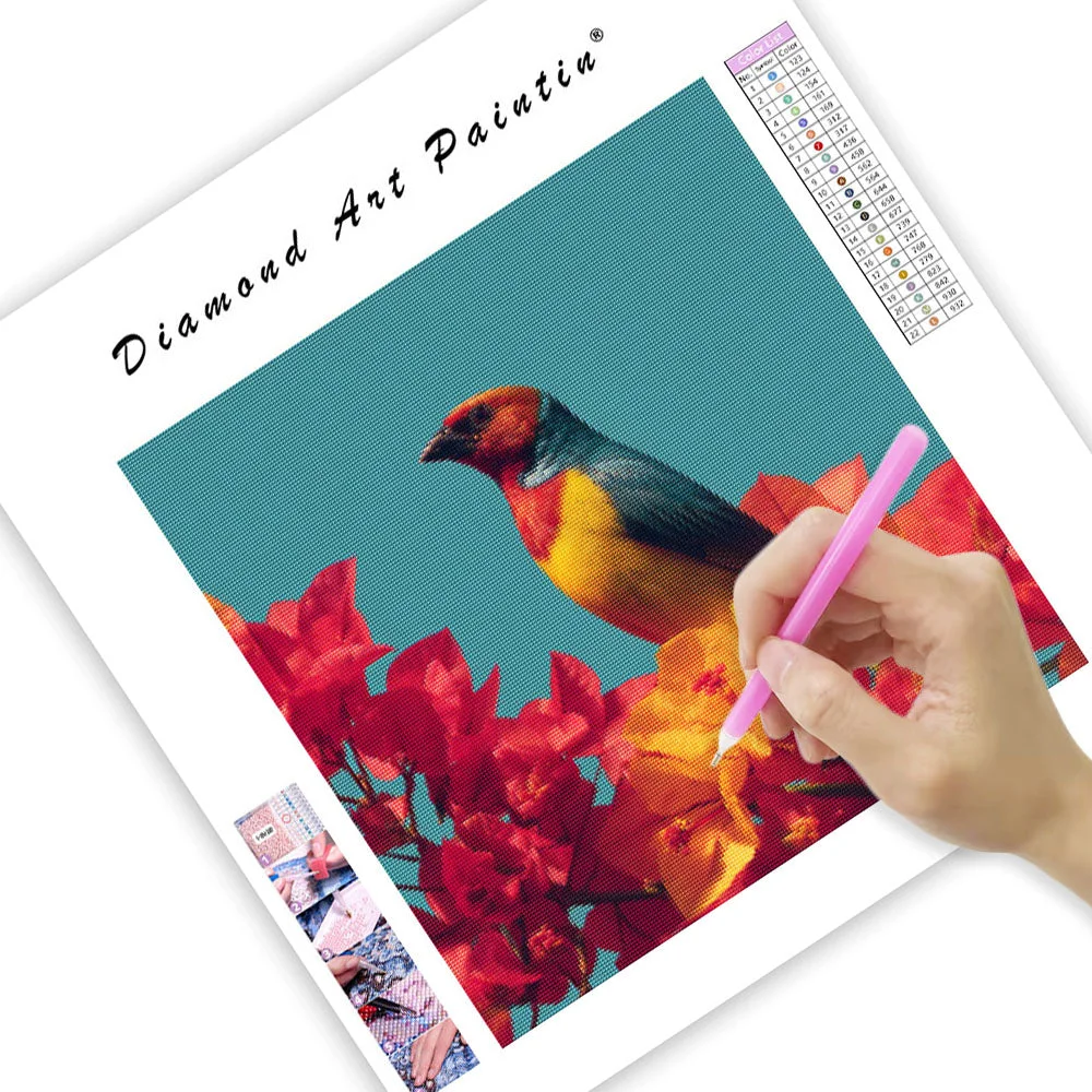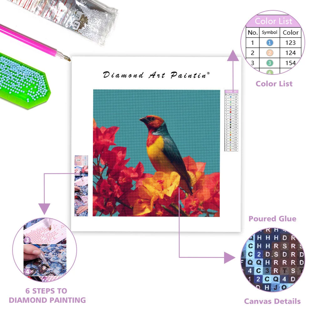 Colorful Tropical Bird and Flowers - Diamond Painting