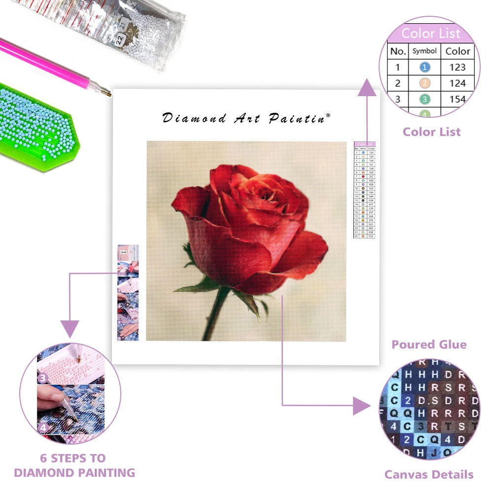 Detailed Red Rose - Diamond Painting