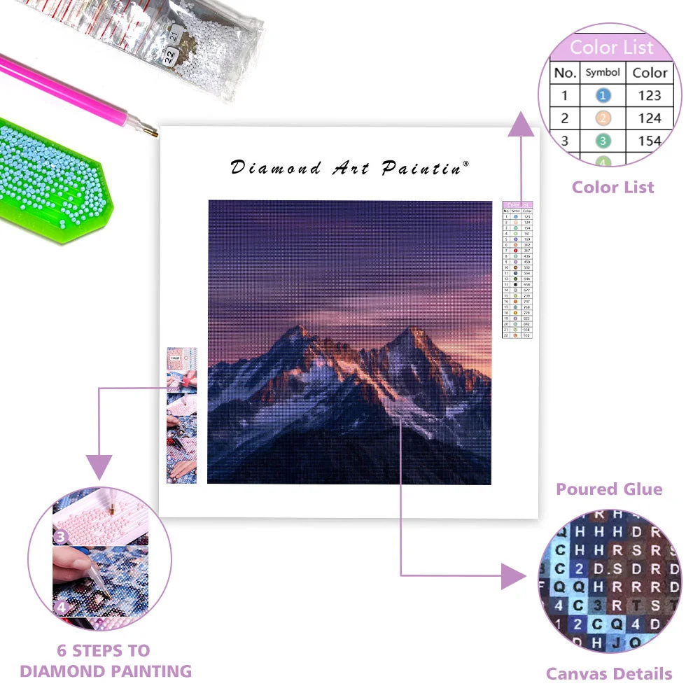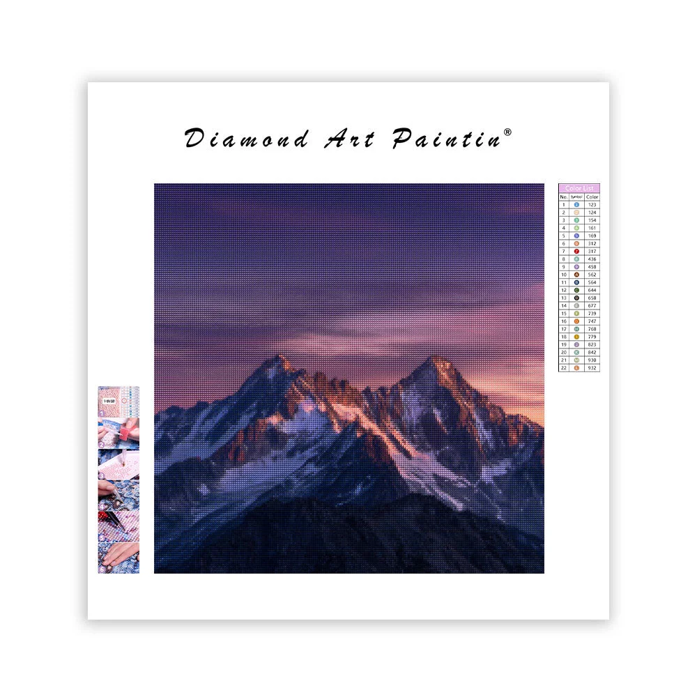 Purple Dawn and Mountain Silhouettes - Diamond Painting