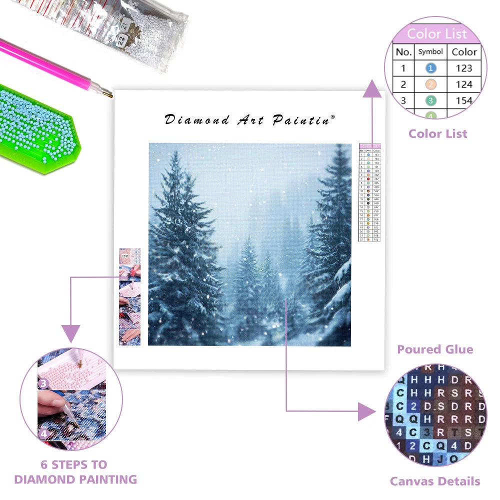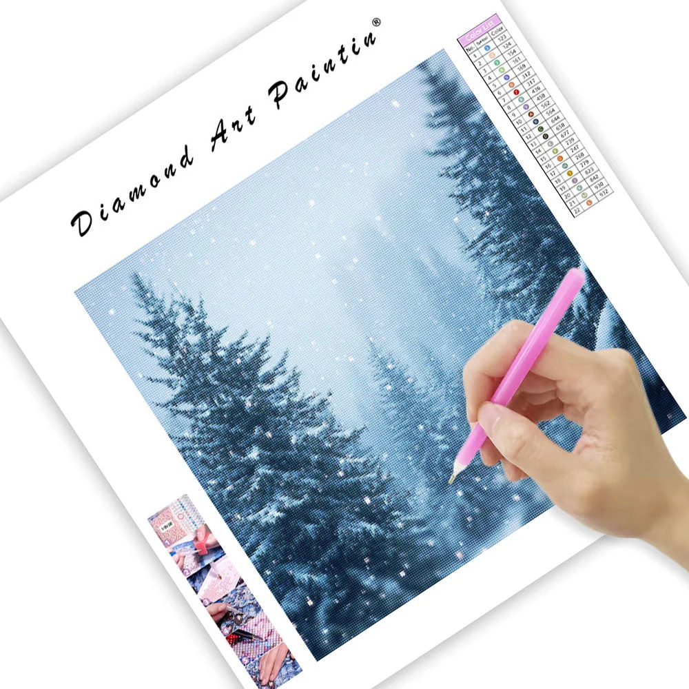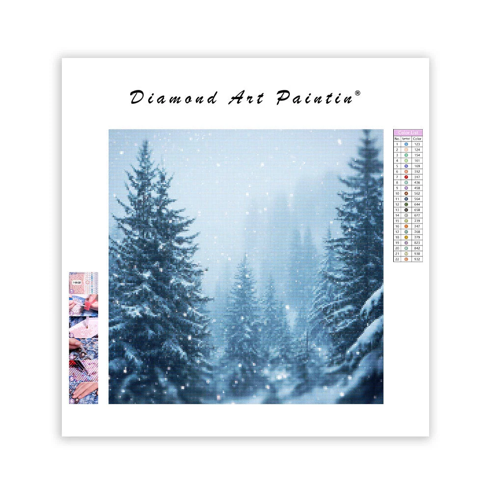 Snow-covered Pine Trees in Winter - Diamond Painting