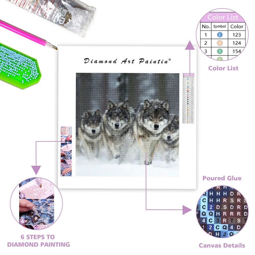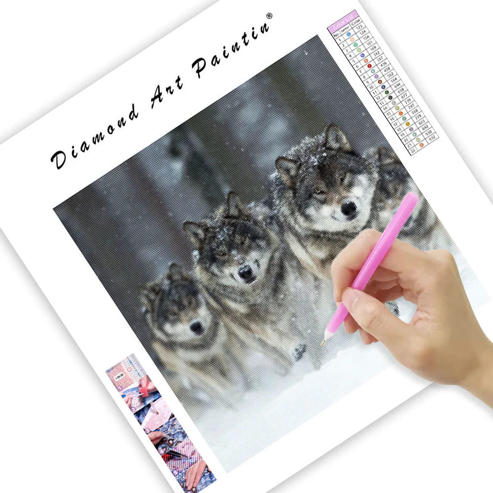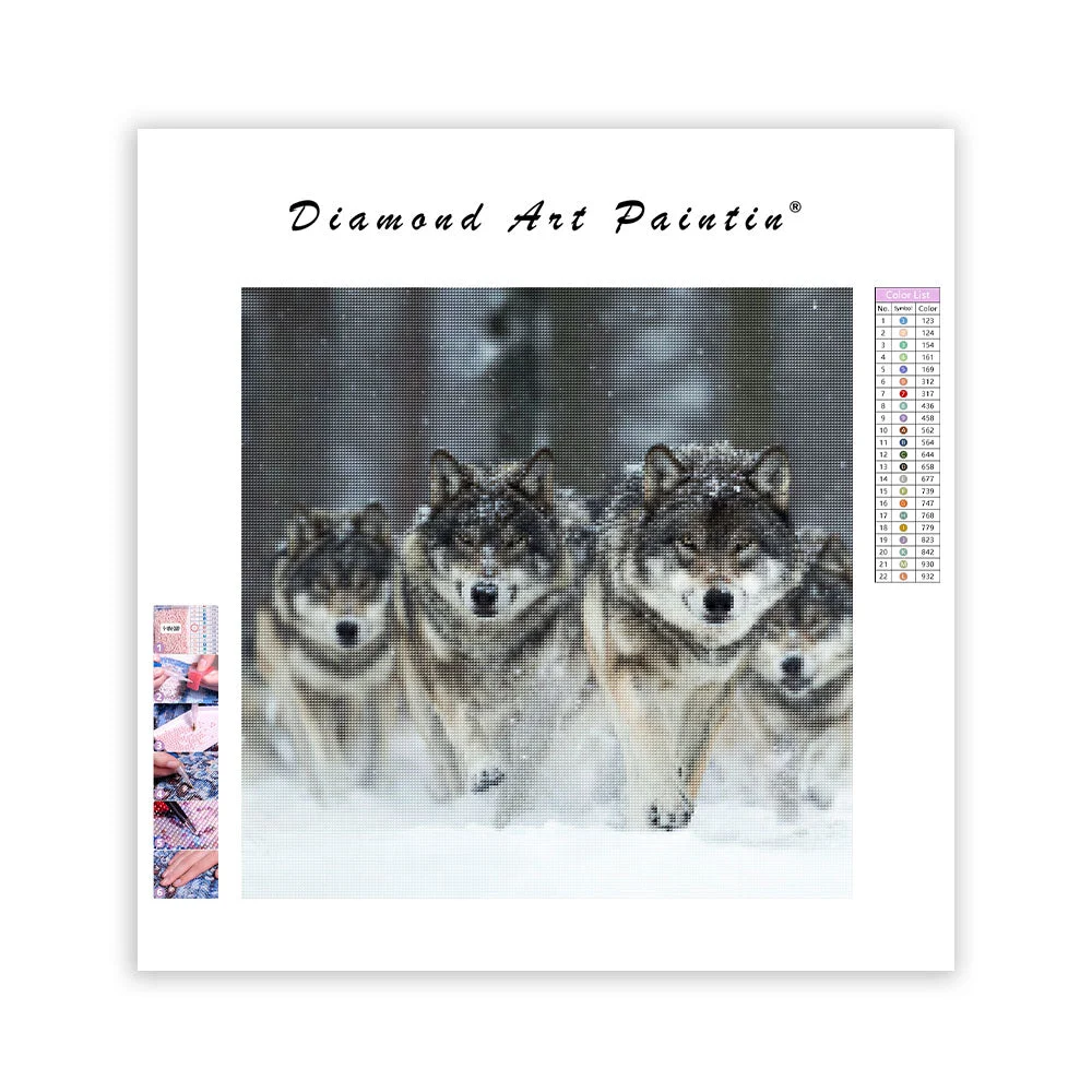 Wolf Pack in Snow - Diamond Painting