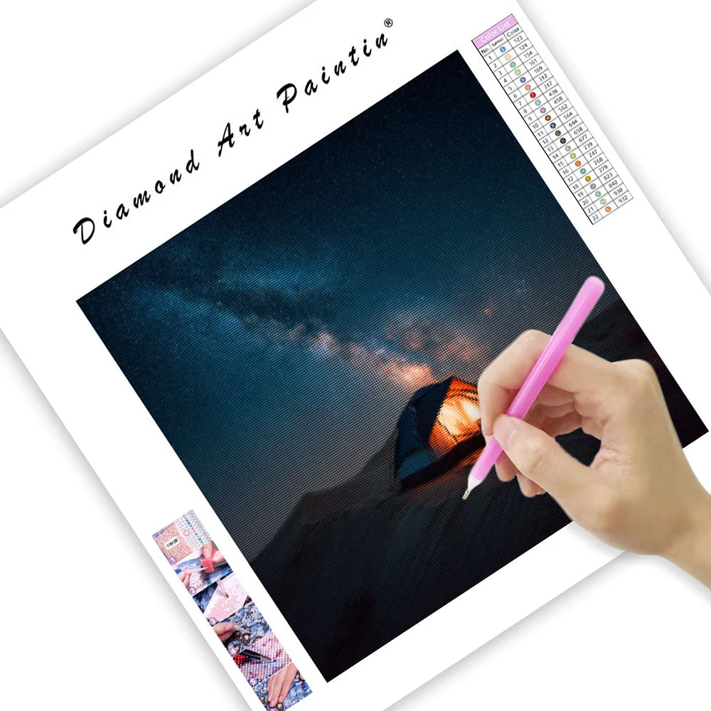 Diamond painting is a relatively new and immensely fun craft that requires you to take tiny square or round shaped, flat backed rhinestones and place them onto a sticky template to create a stunning, ultra sparkly 5D image. Diamond painting therefore does not have anything to do with actual painting; it is thought to be more of a modern combination of cross stitch, paint by numbers and mosaics.