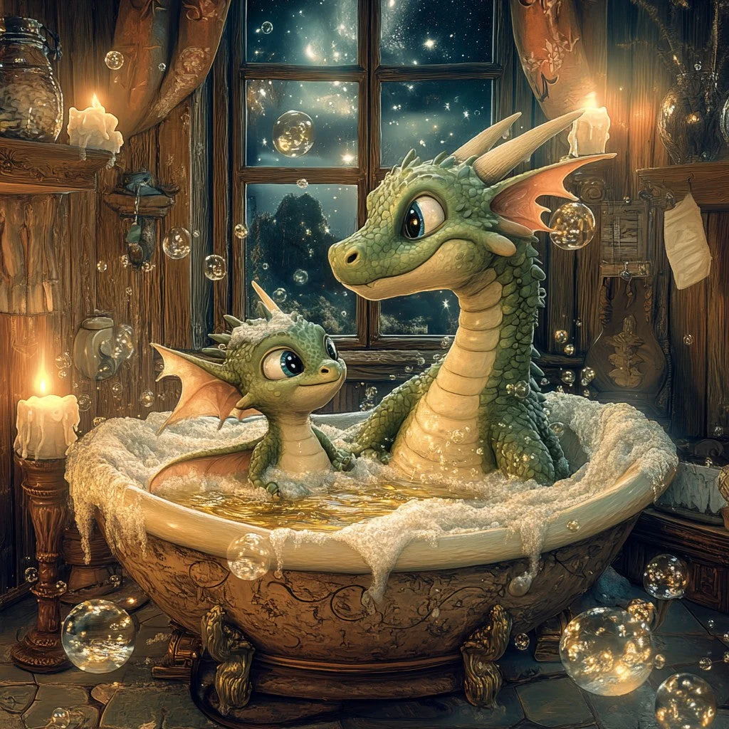 Dragon Bath Time - Diamond Painting