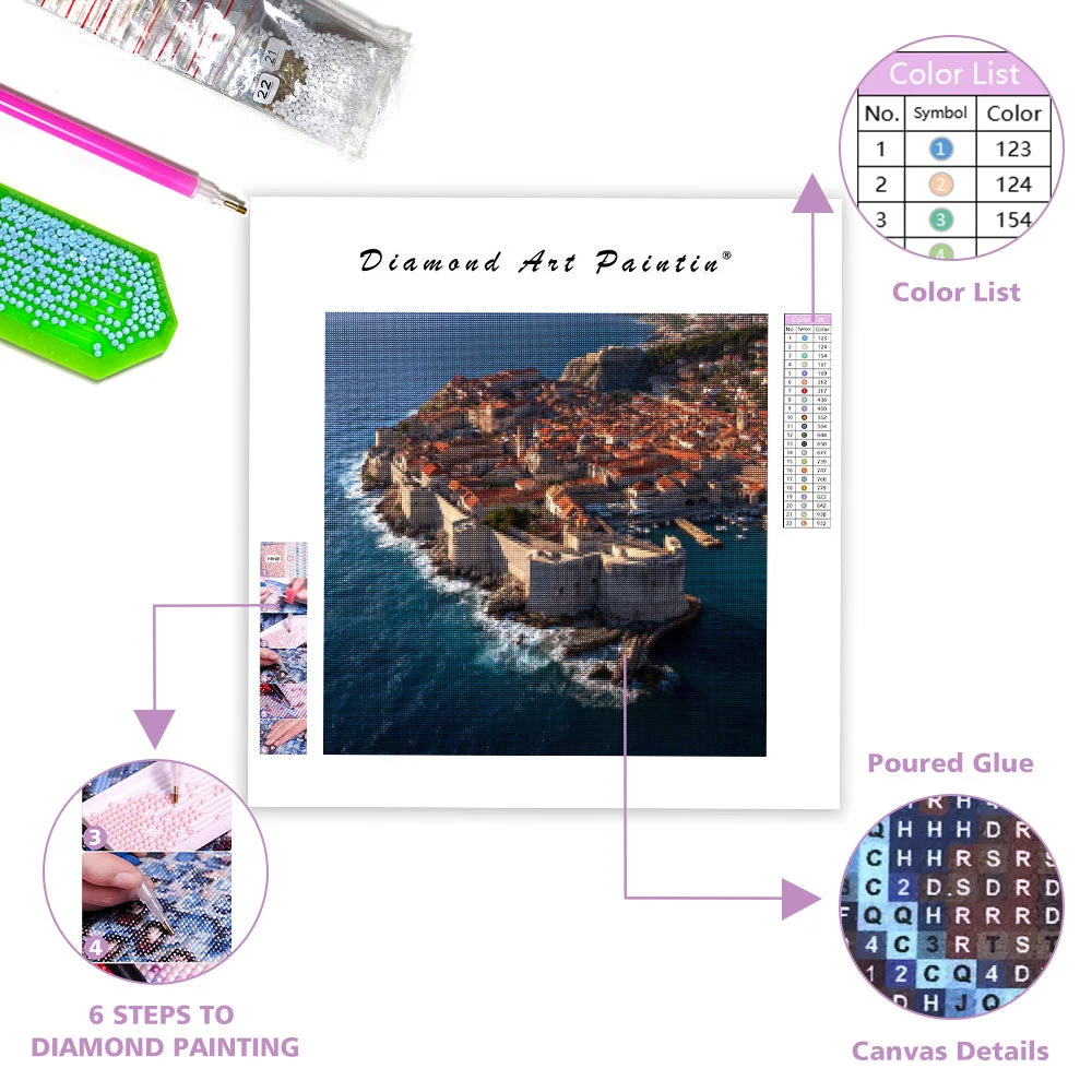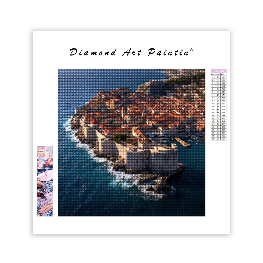 Dubrovnik City Walls & Red Roofs - Diamond Painting