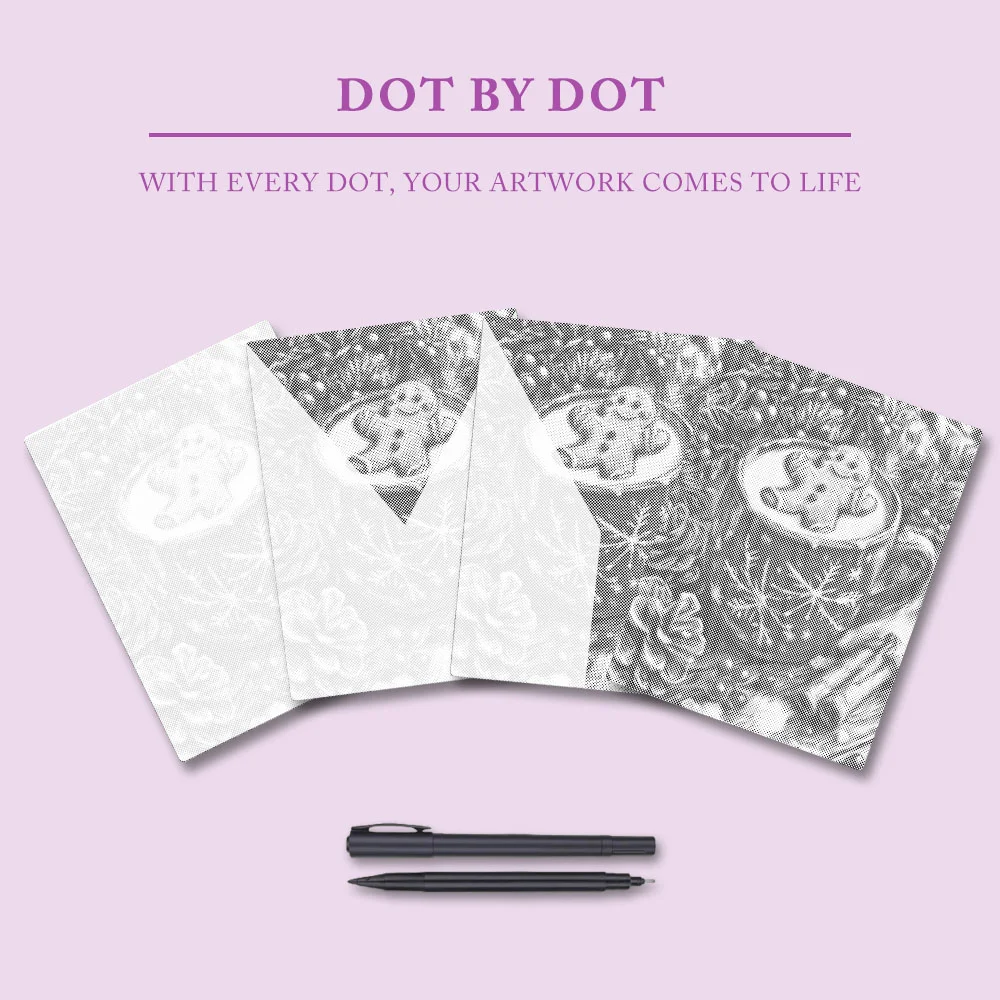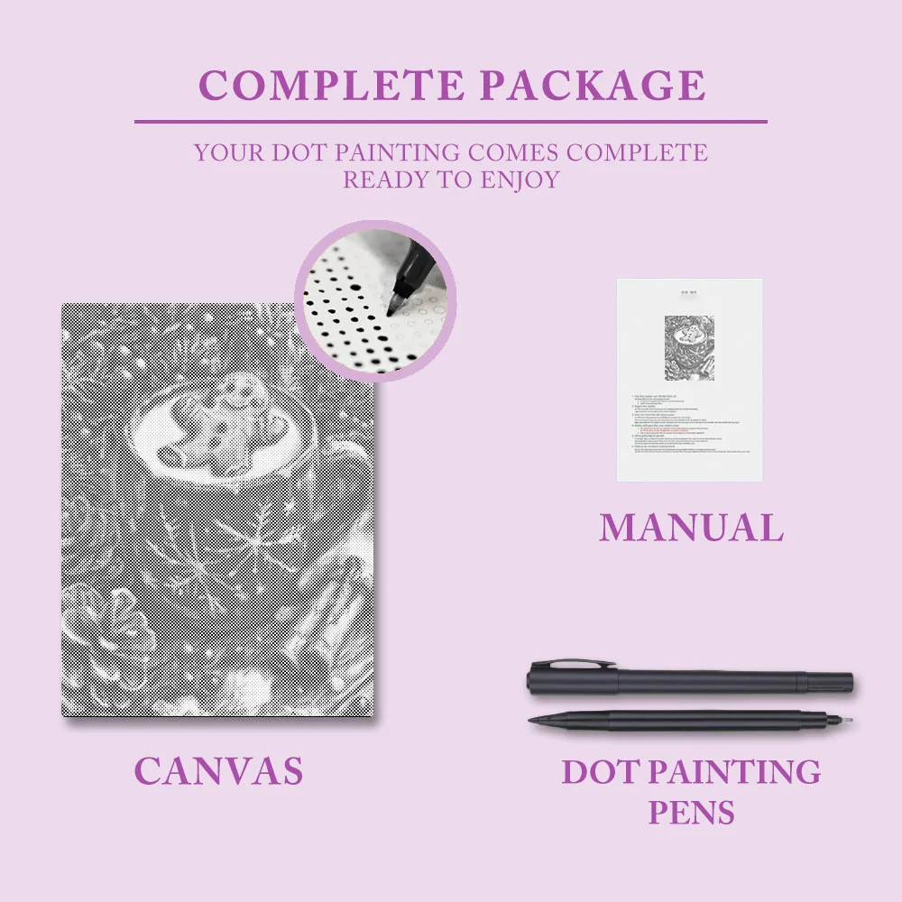Pointillism is a timeless art form. What could be more relaxing than creating harmonious colors in a painting? And the final result is exquisite. The charm of pointillism lies in its lack of complicated rules or the use of various painting tools. Simply pick up the markers included with the pre-printed canvas and begin coloring.