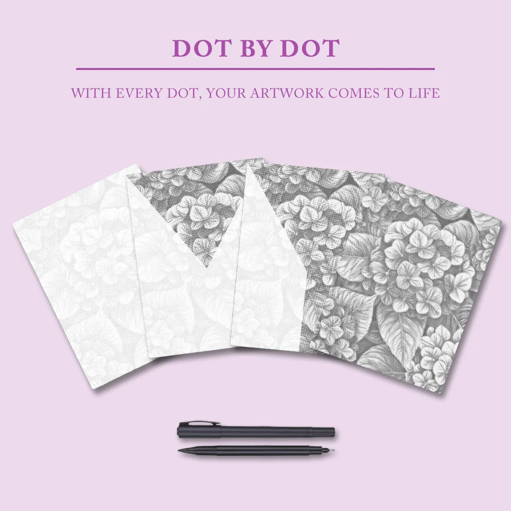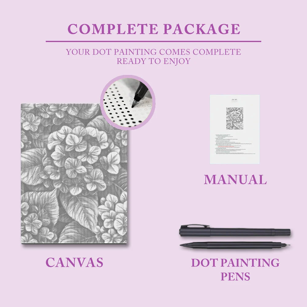 Pointillism is a timeless art form. What could be more relaxing than creating harmonious colors in a painting? And the final result is exquisite. The charm of pointillism lies in its lack of complicated rules or the use of various painting tools. Simply pick up the markers included with the pre-printed canvas and begin coloring.