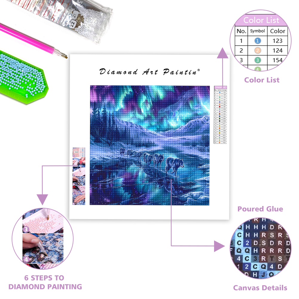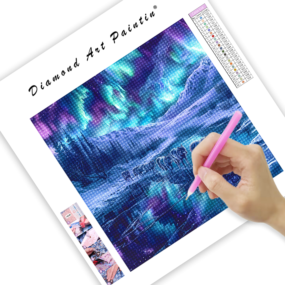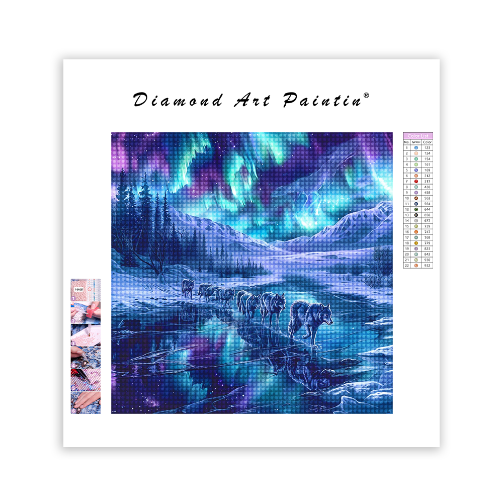 Migrating Wolves in the Aurora - Diamond Painting