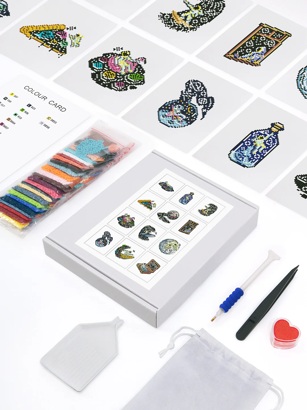 • Exquisite Designs: Each mini diamond painting is thoughtfully chosen, offering a variety of patterns and themes to suit different decorating needs.