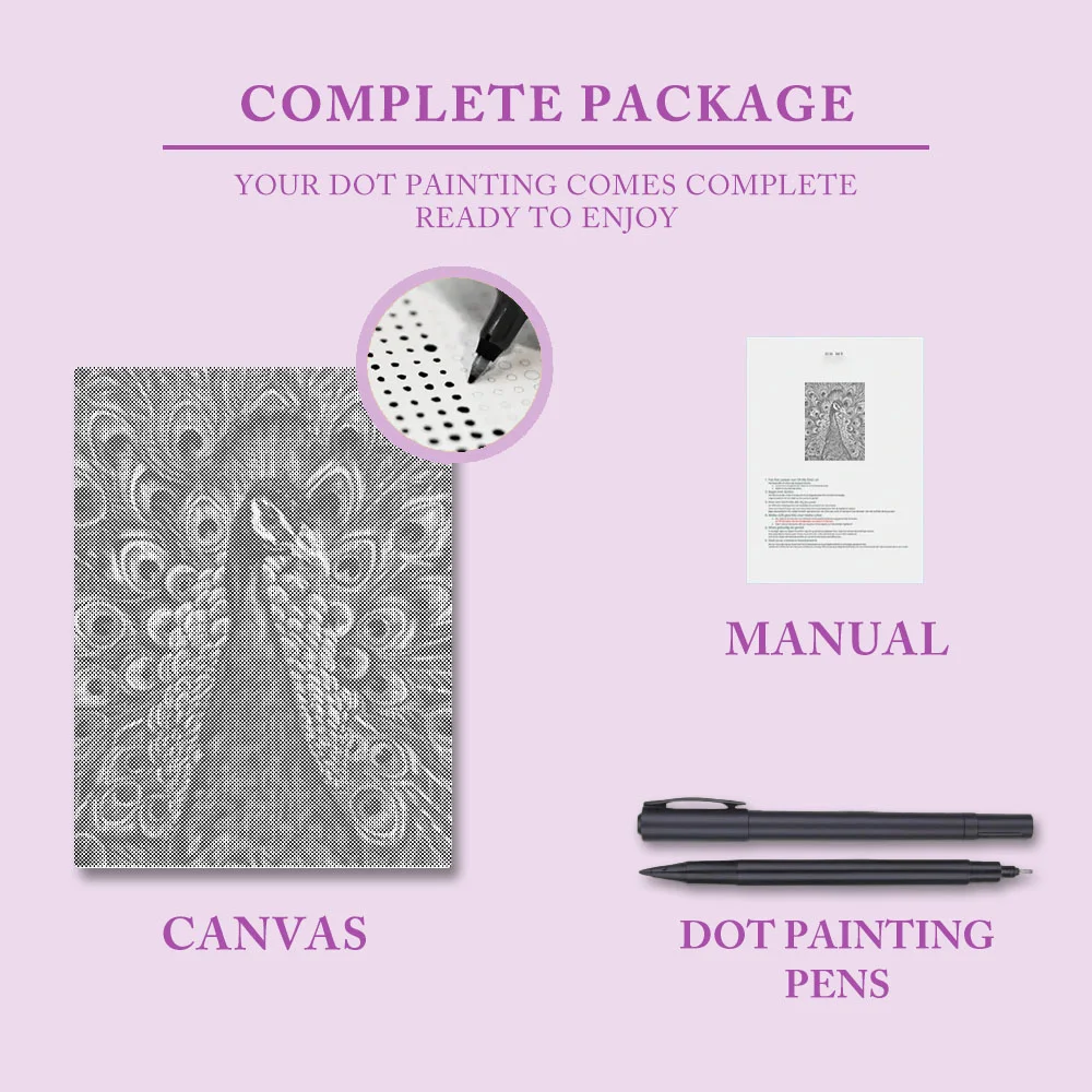 Pointillism is a timeless art form. What could be more relaxing than creating harmonious colors in a painting? And the final result is exquisite. The charm of pointillism lies in its lack of complicated rules or the use of various painting tools. Simply pick up the markers included with the pre-printed canvas and begin coloring.