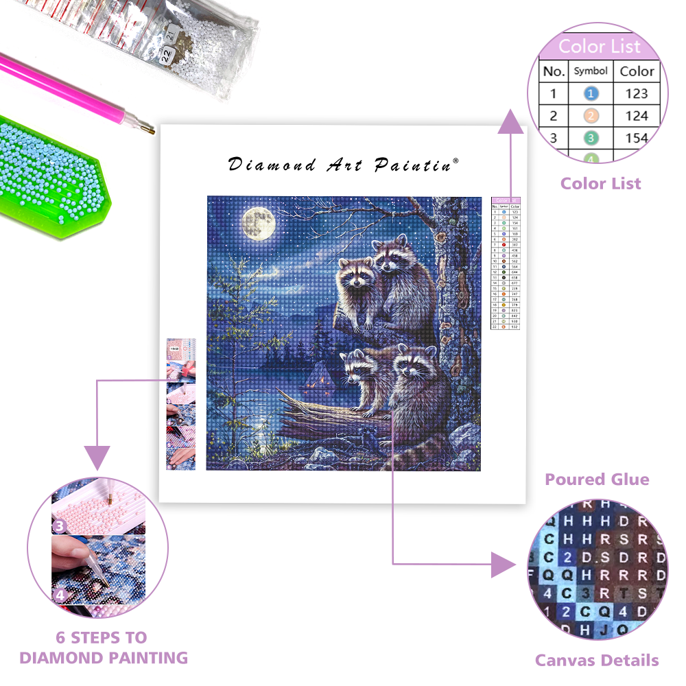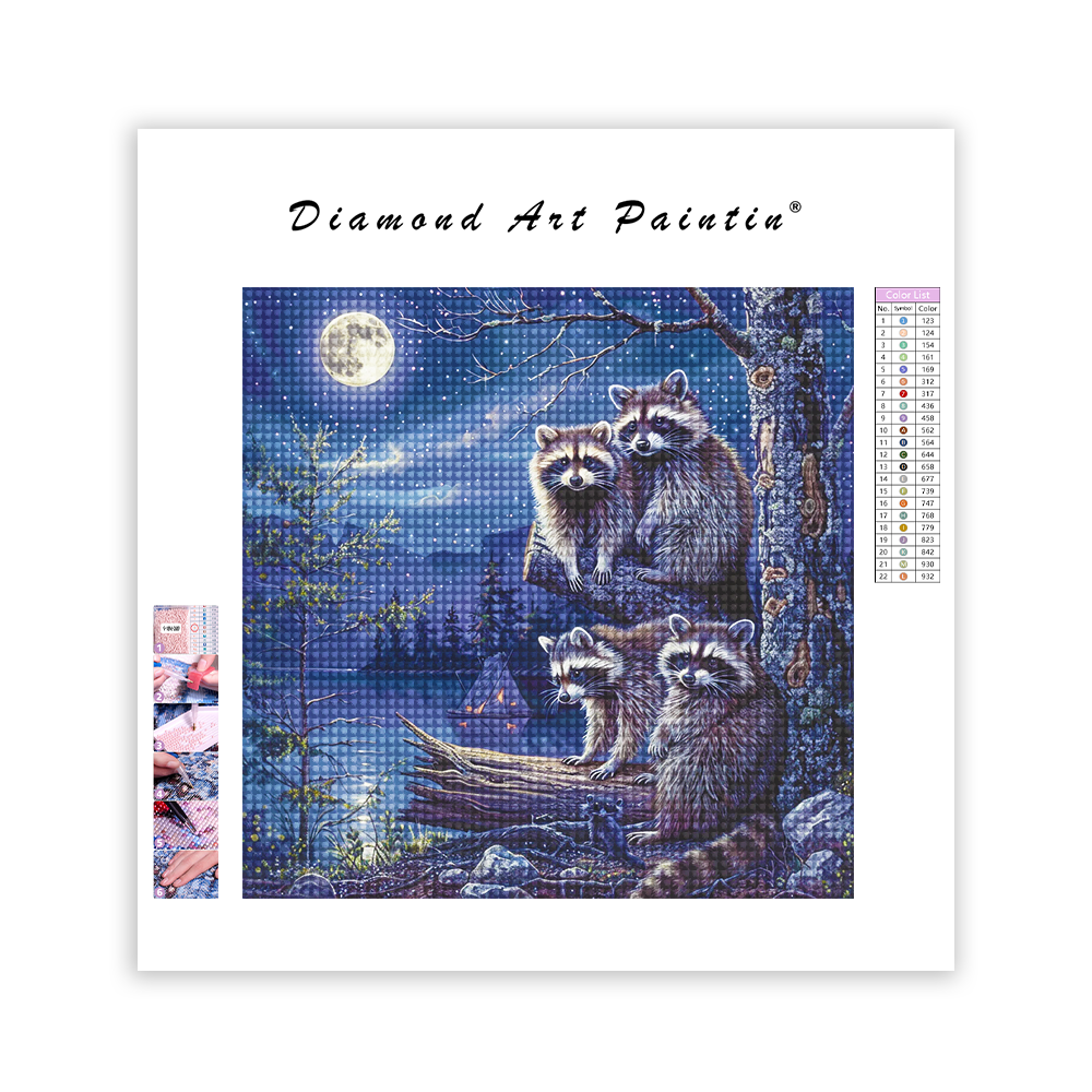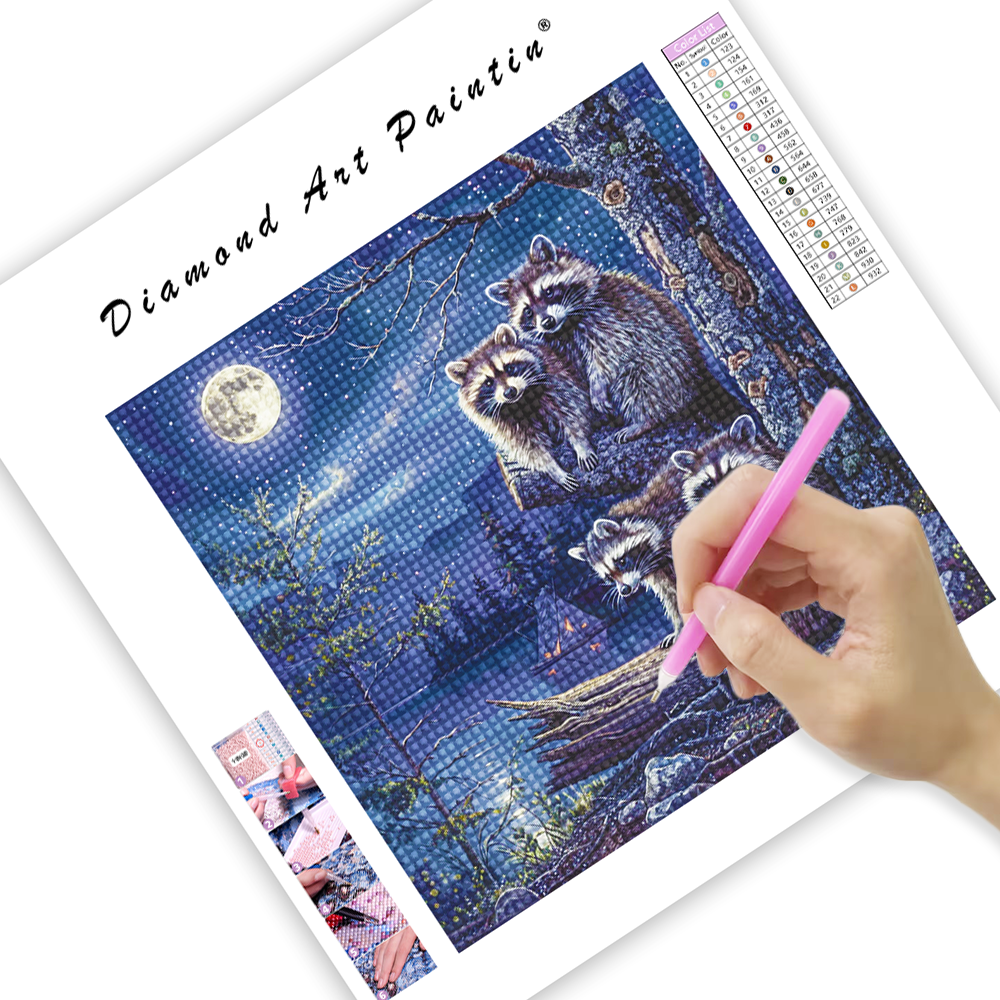 Raccoon Family - Diamond Painting