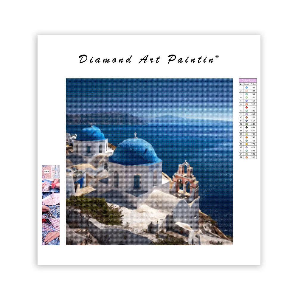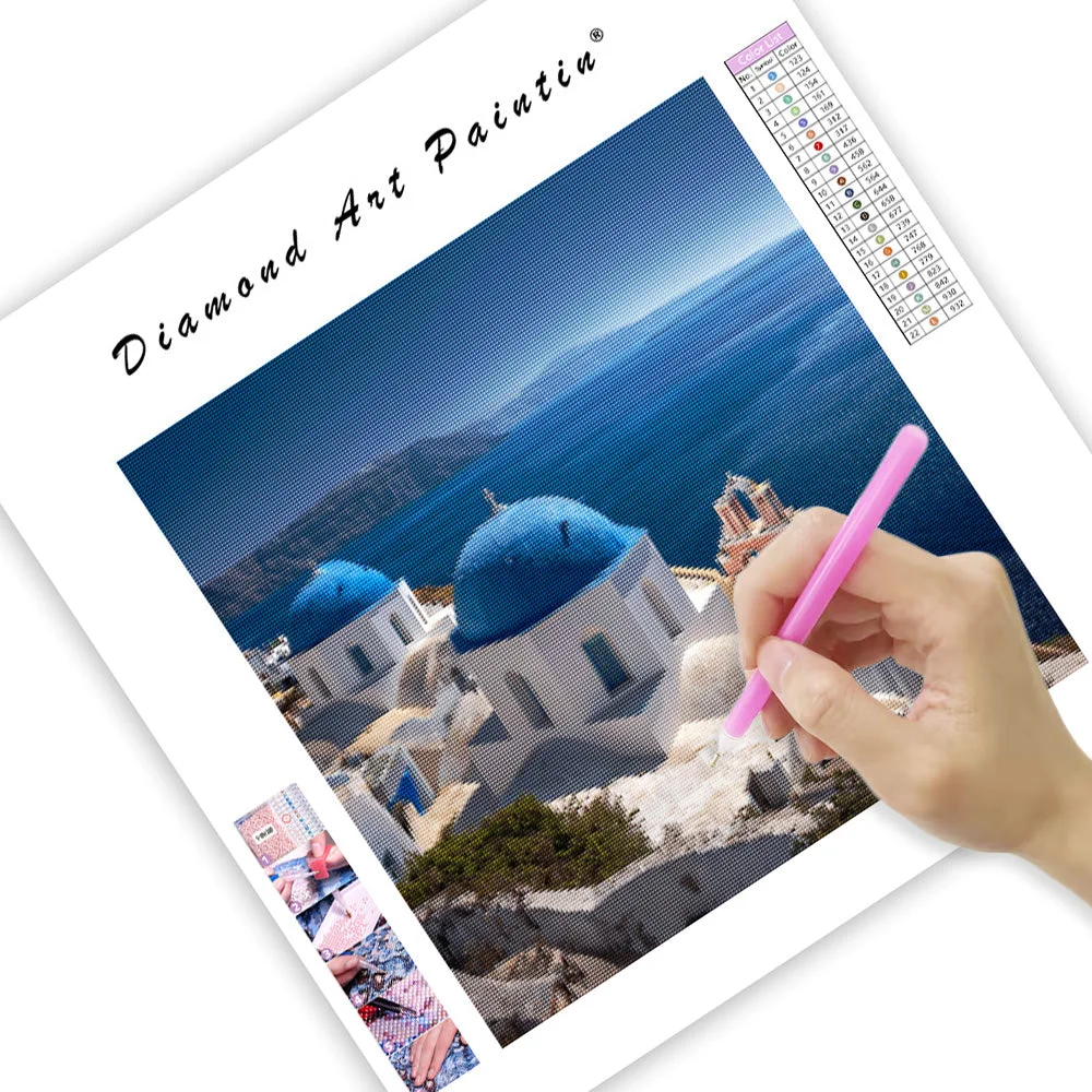 This item: Santorini Blue Dome View - Diamond Painting