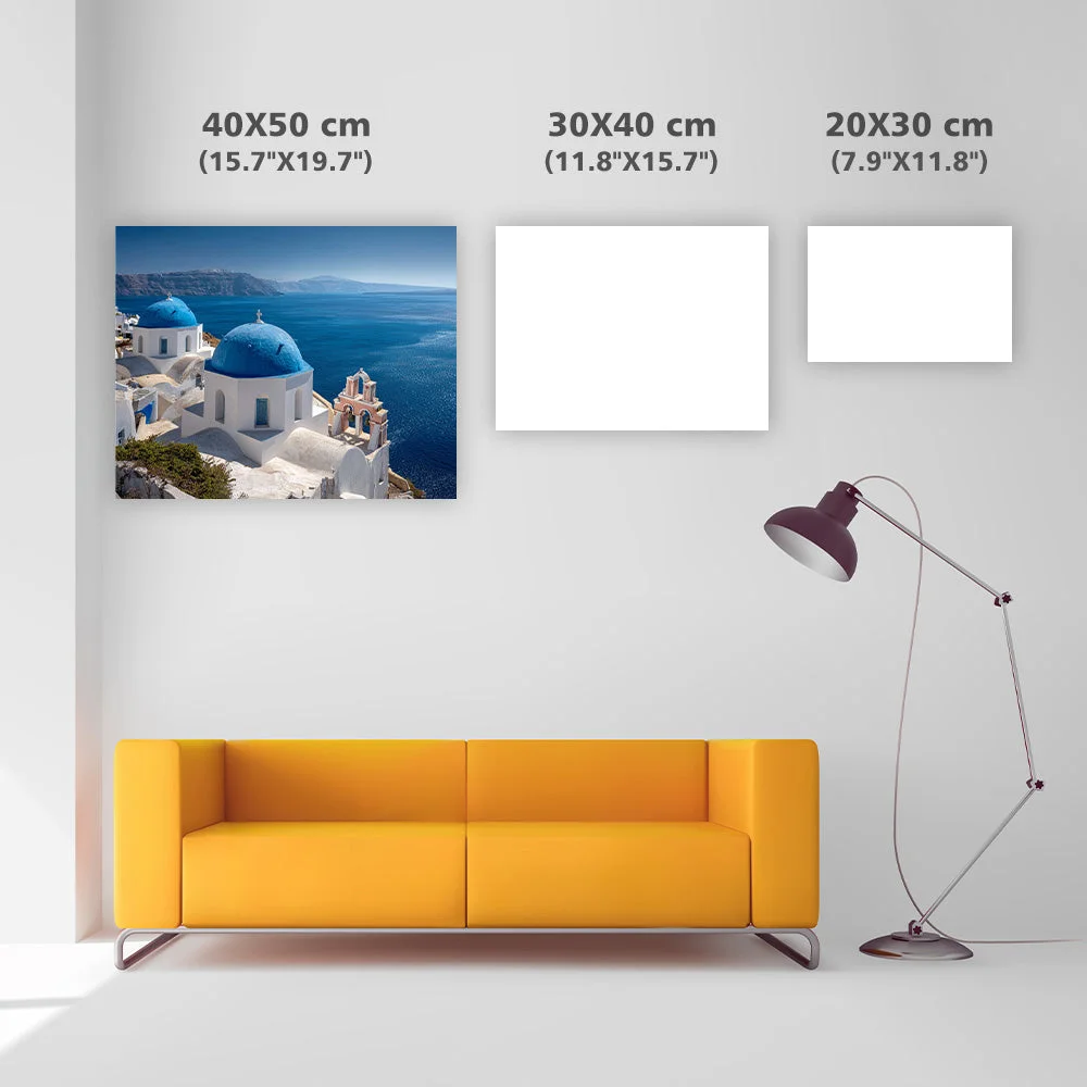 Santorini Blue Dome View - Diamond Painting