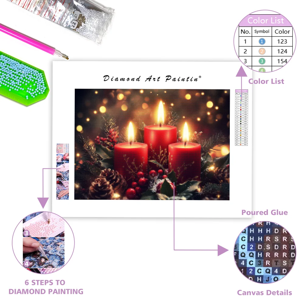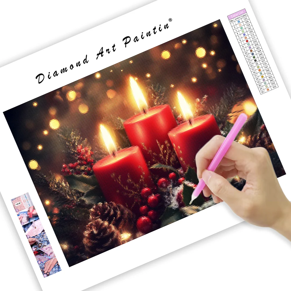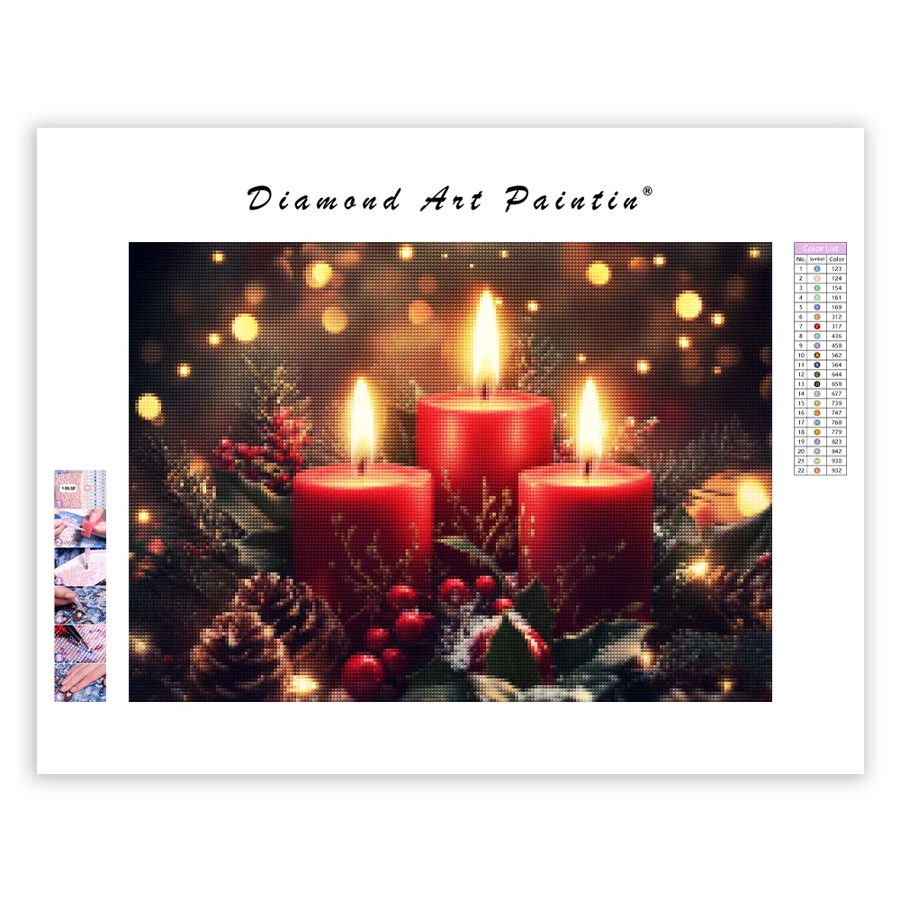 Set of Three Red Christmas Candles – Diamond Painting