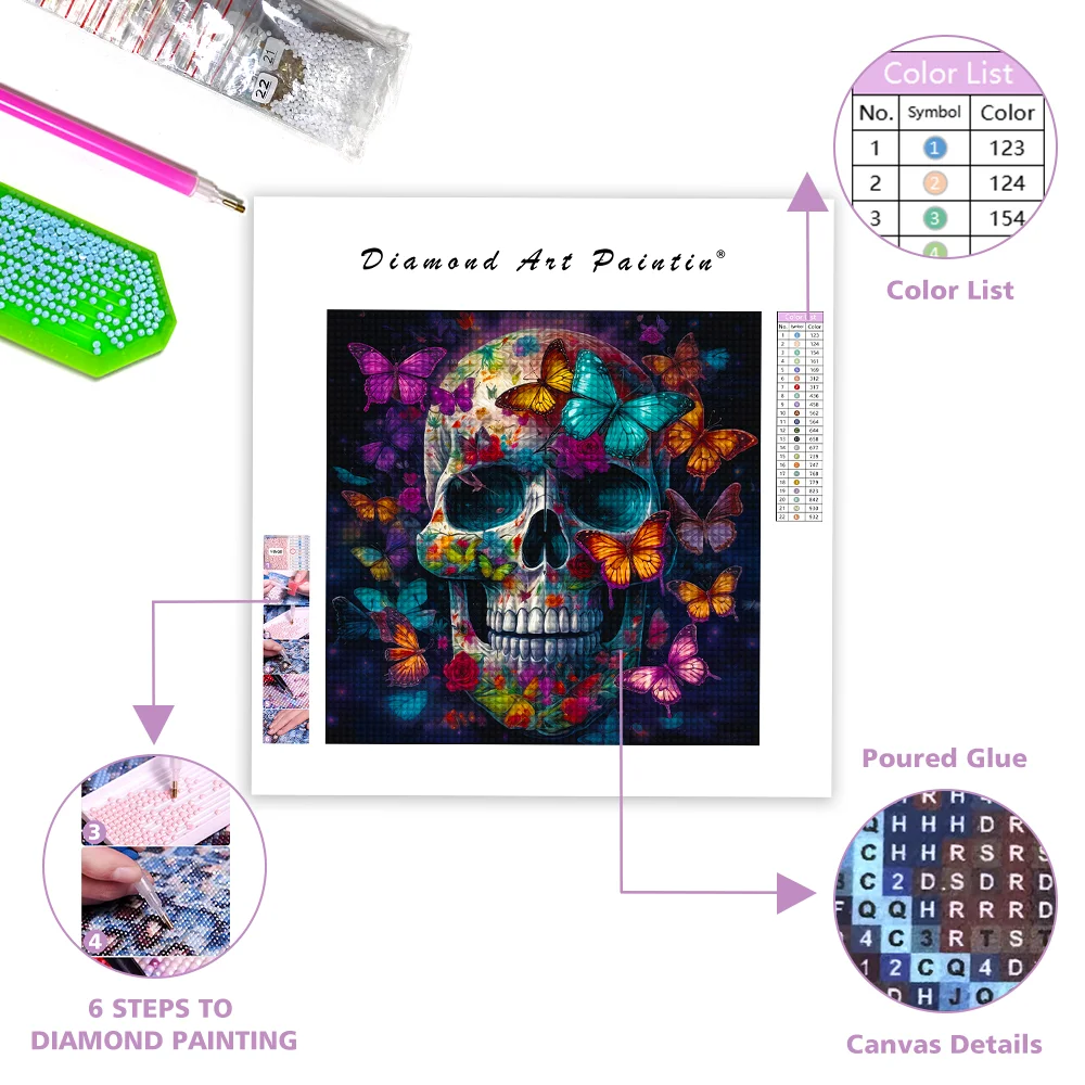 This item: Skull With Colorful Butterflies - Diamond Painting
