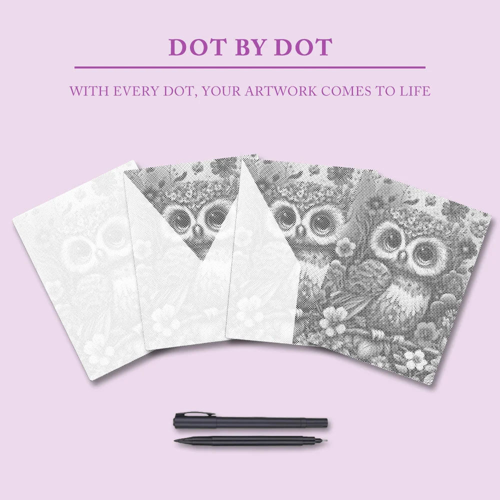 Pointillism is a timeless art form. What could be more relaxing than creating harmonious colors in a painting? And the final result is exquisite. The charm of pointillism lies in its lack of complicated rules or the use of various painting tools. Simply pick up the markers included with the pre-printed canvas and begin coloring.