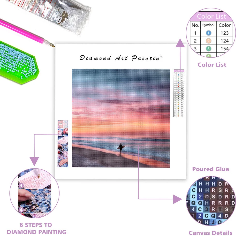 PREMIUM DIAMOND PAINTING KIT: Kit includes everything you need to create your Diamond Painting, including 1x adhesive canvas, 1x set of diamonds, and 1x premium toolkit.