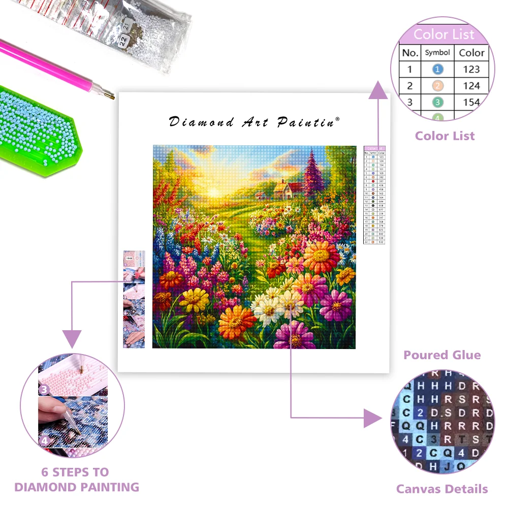 Vibrant Country Garden Filled - Diamond Painting
