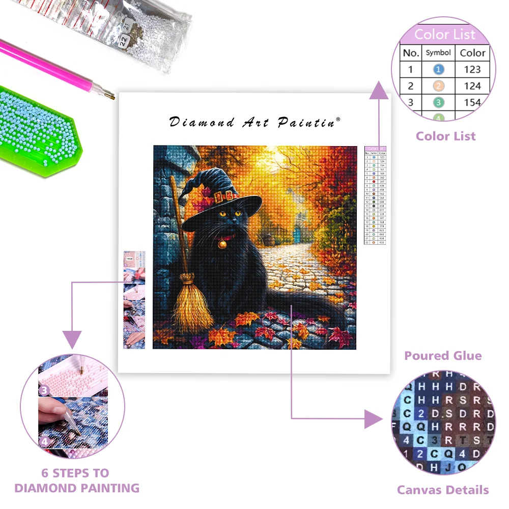 Witchs Hat and Broomstick - Diamond Painting